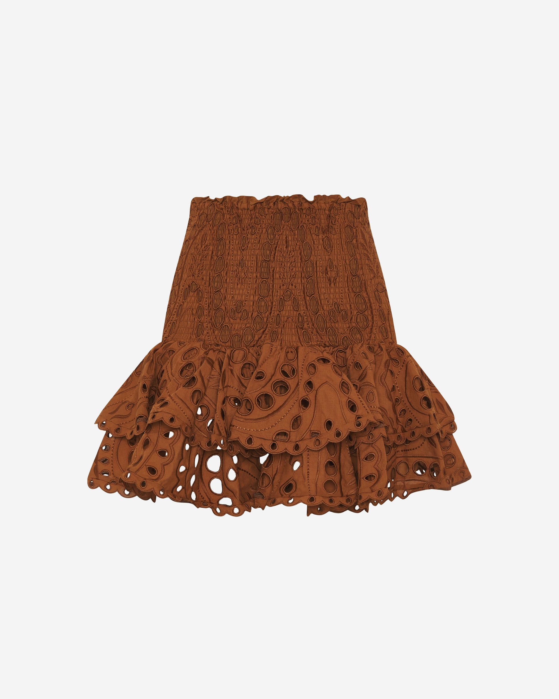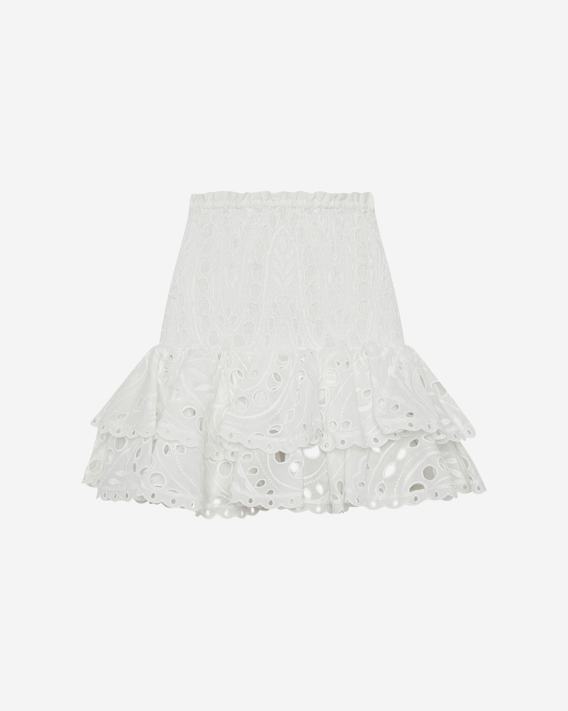 The NERISSA skirt is a charming piece that combines comfort and movement with an irresistibly romantic touch. Its smocked upper section gently adapts to the silhouette, softly enhancing the shape.