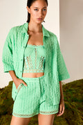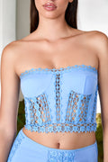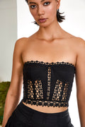 Elevate your seasonal looks with our elegant AZAL cotton voile bustier, paired with delicate guipure lace. Designed to enhance your figure and add a touch of sophistication to any outfit, this piece is an ode to femininity. It features delicate cups and intricate patterns, making it the perfect addition to your wardrobe.
