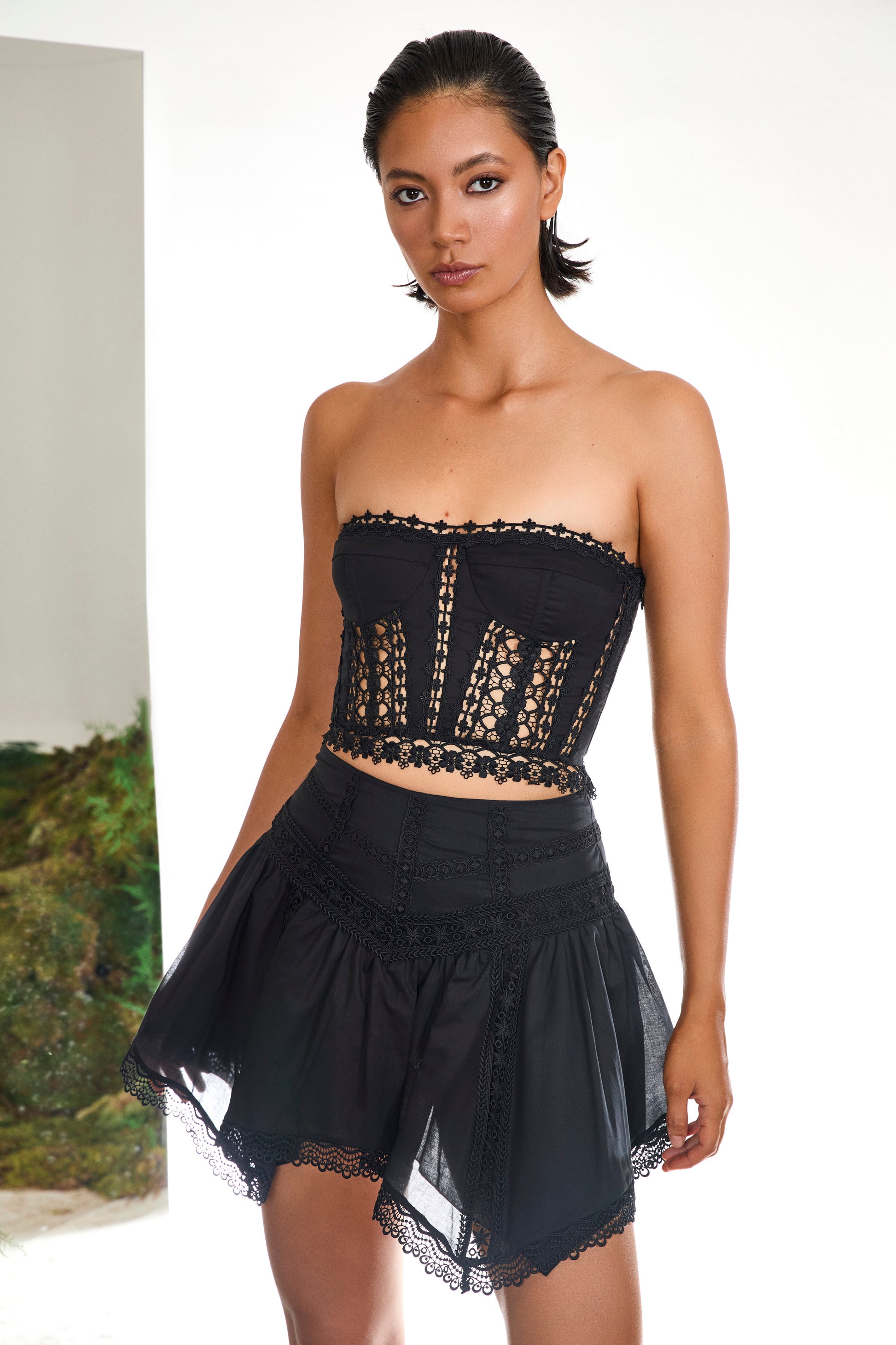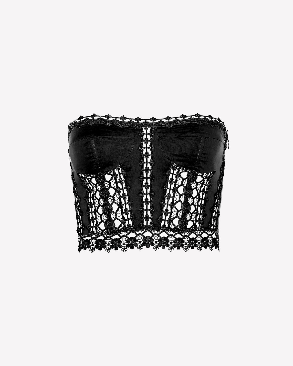 Elevate your seasonal looks with our elegant AZAL cotton voile bustier, paired with delicate guipure lace. Designed to enhance your figure and add a touch of sophistication to any outfit, this piece is an ode to femininity. It features delicate cups and intricate patterns, making it the perfect addition to your wardrobe.