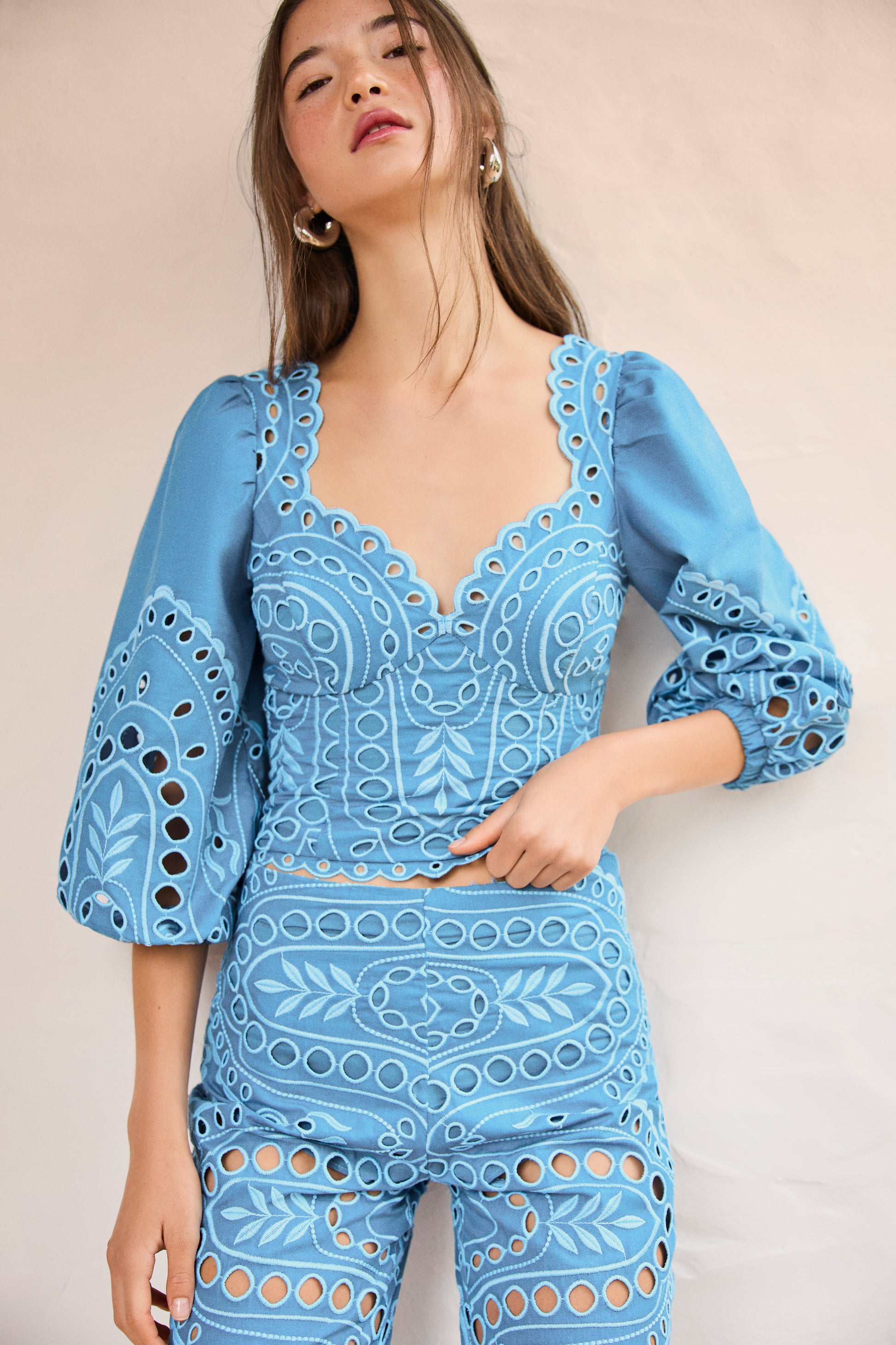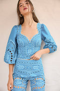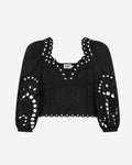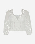 The BASS top is a true statement of style. If you're looking for a piece that's romantic, feminine, and subtly magnetic with a hint of mystery, this one is sure to captivate you. The embroidery is thoughtfully placed to embrace the silhouette and highlight the bust with precision, striking a perfect balance between softness and elegance.