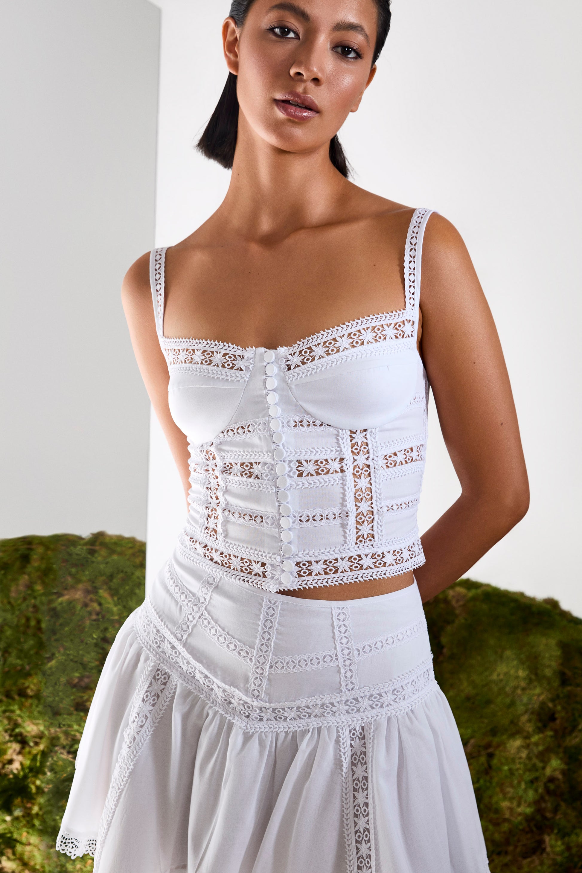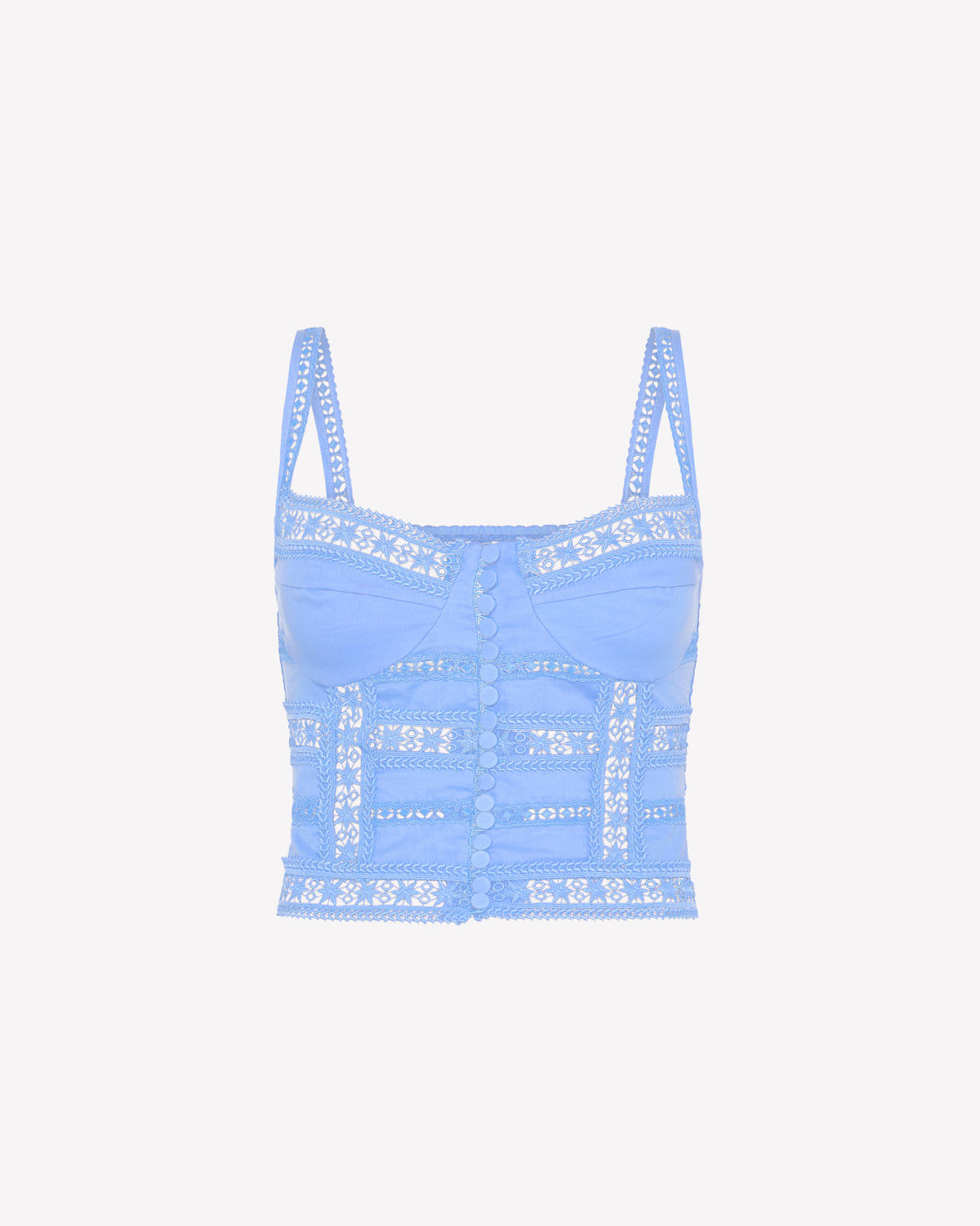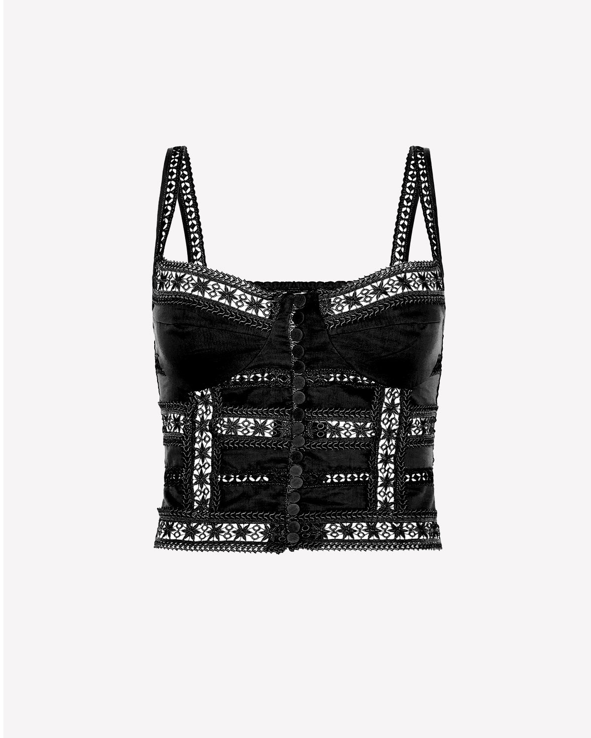 The BRETH top creates the perfect silhouette thanks to an exquisite guipure pattern along the body. Its cups and ends are harmonised with the delicate motifs that bring a feminine line to the whole piece. Its central buttoning allows it to adapt to your silhouette to perfection.