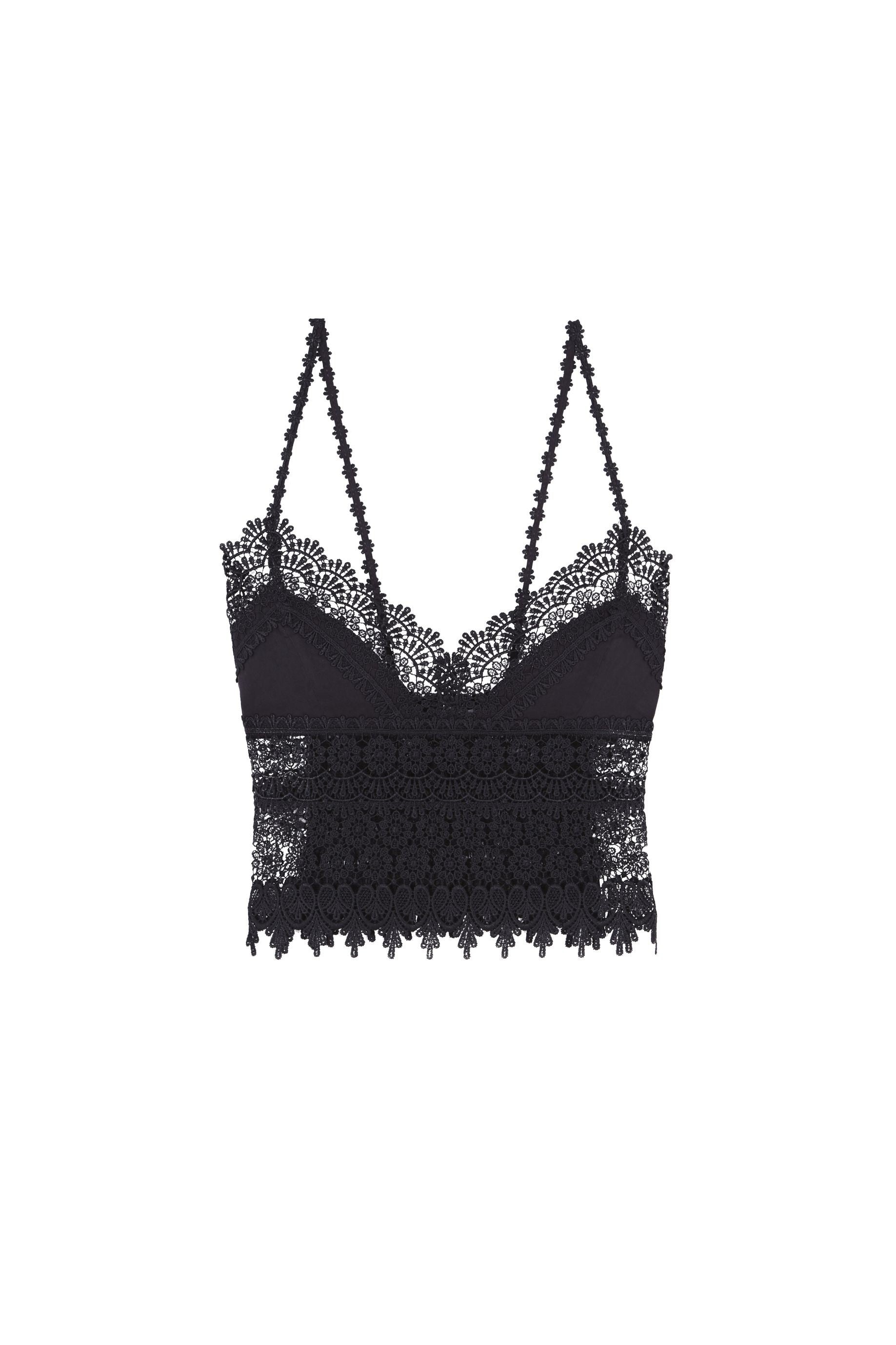 Dana’s dark ethereal feel, with rows of guipure panelling and delicate straps make this the perfect night and day timeless piece, to be worn with strappy heels and a sheer maxi skirt. Add a deep red lip to Dana for even more glamour.