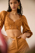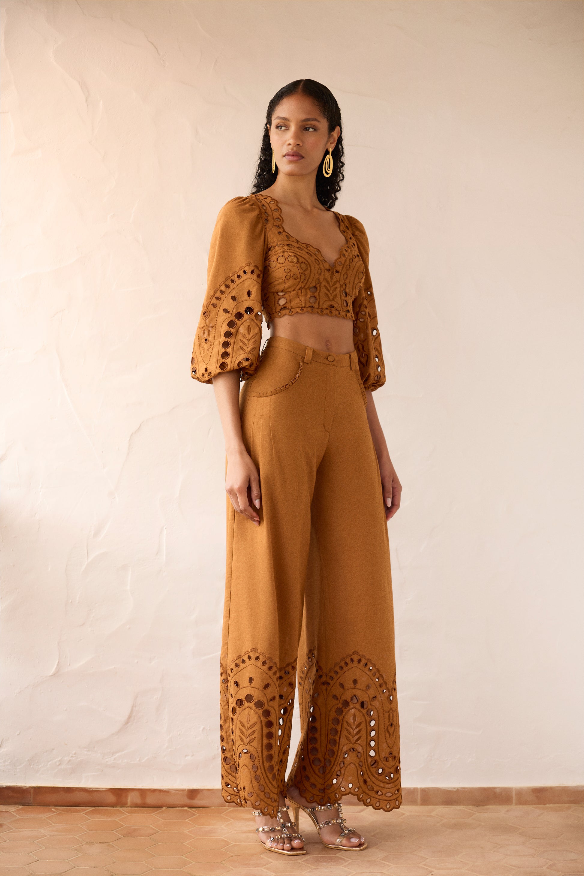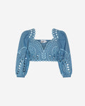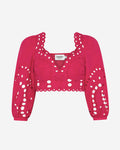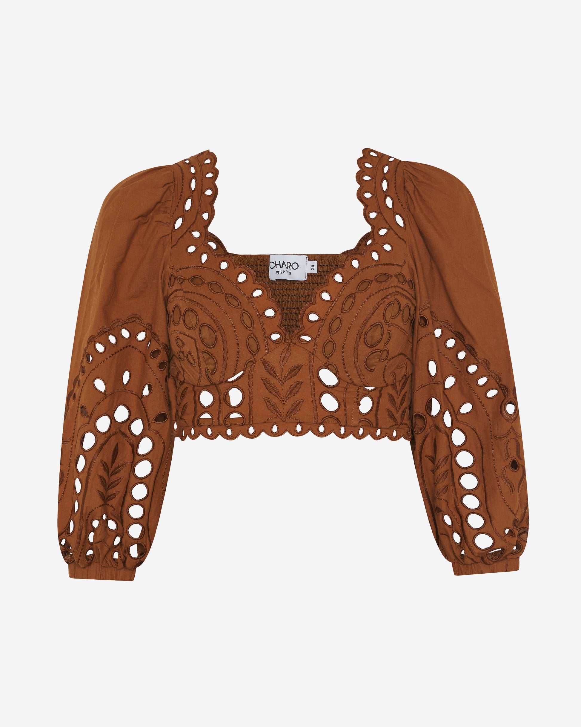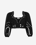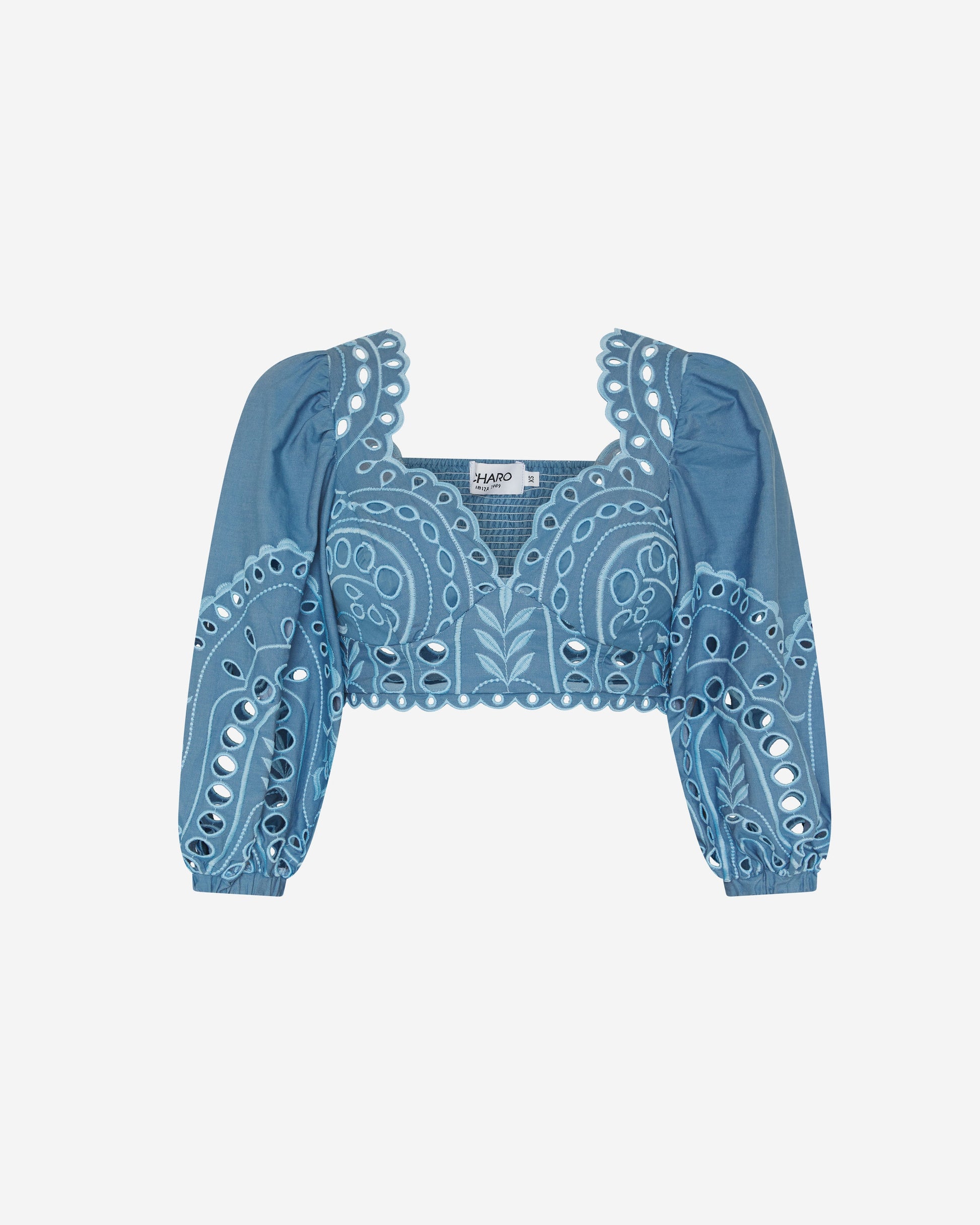 Elevate your style with the LUNA top a romantic piece that blends strength and softness in every detail. Its deep neckline, framed by intricate embroidery, enhances the bust with effortless elegance, while the voluminous sleeves add a dramatic and graceful touch.