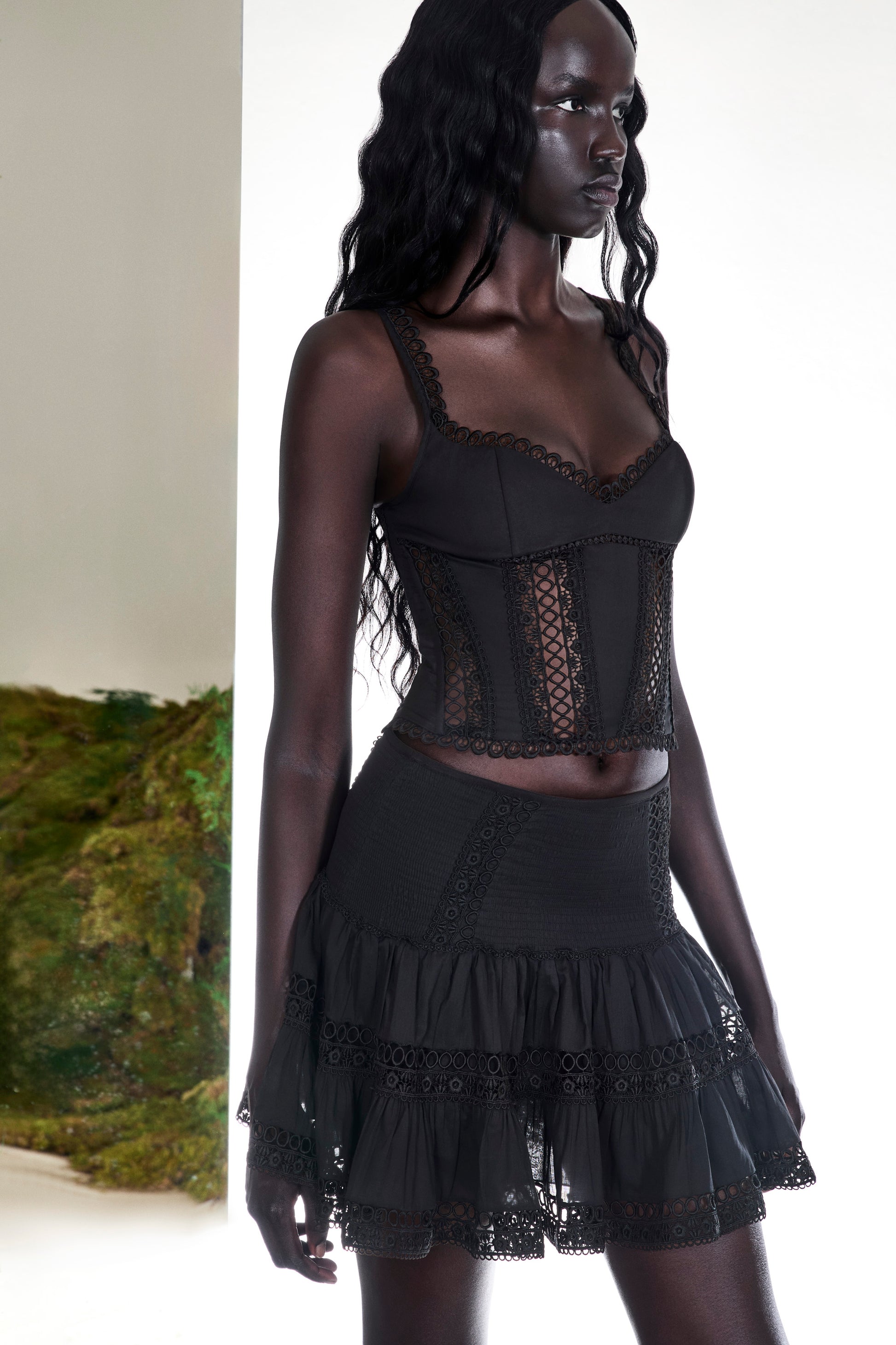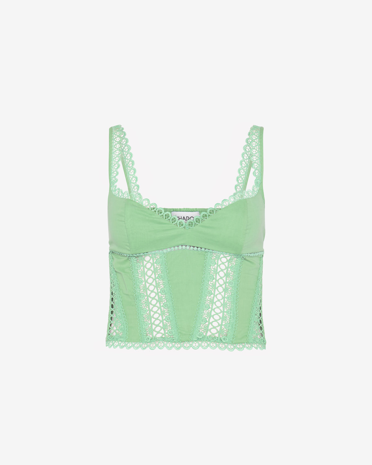 Our POPPY top stands out for its elegant silhouette in cotton voile richly decorated with a floral pattern guipure. Its feminine sweetheart-like neckline perfectly frames the figure, making you feel beautiful and comfortable.