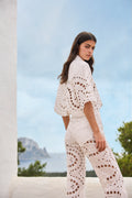 Crafted from artisanal embroidery inspired by organic motifs, each flowing line gracefully traces the fabric, while the scalloped hem adds a feminine, distinctive finish. A bold yet versatile piece, perfect for elevating any look with personality and elegance.