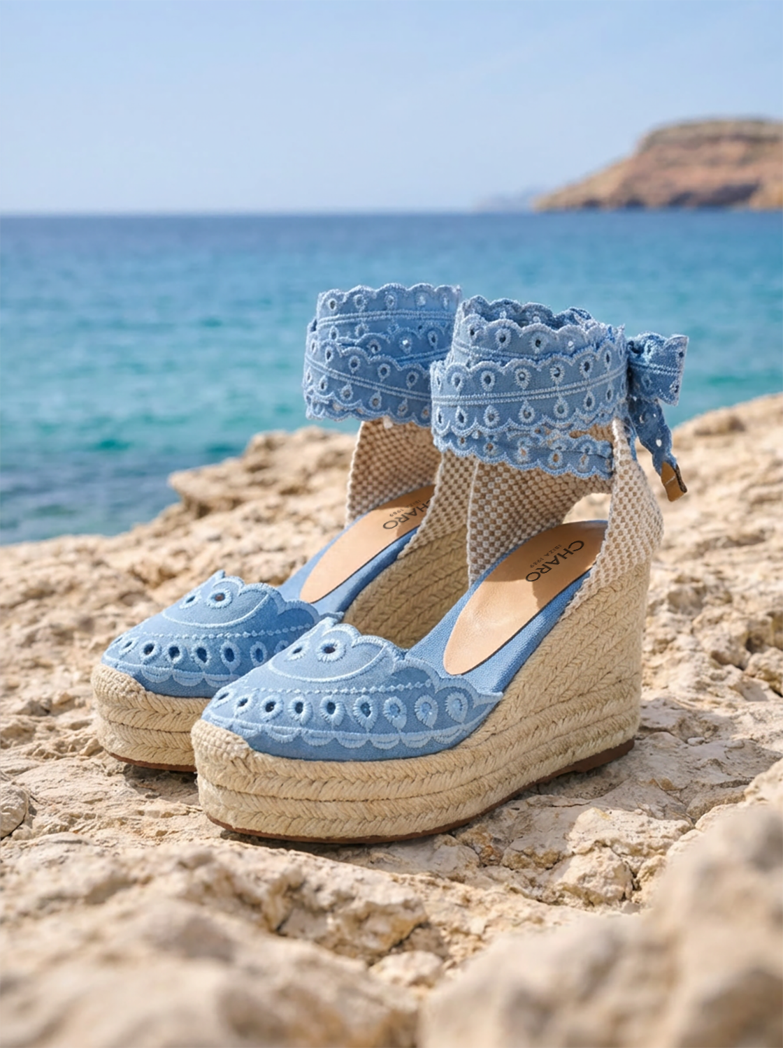 Alpargata Sealace confeccionada en bordado 100% de algodón y cierre de cintas.