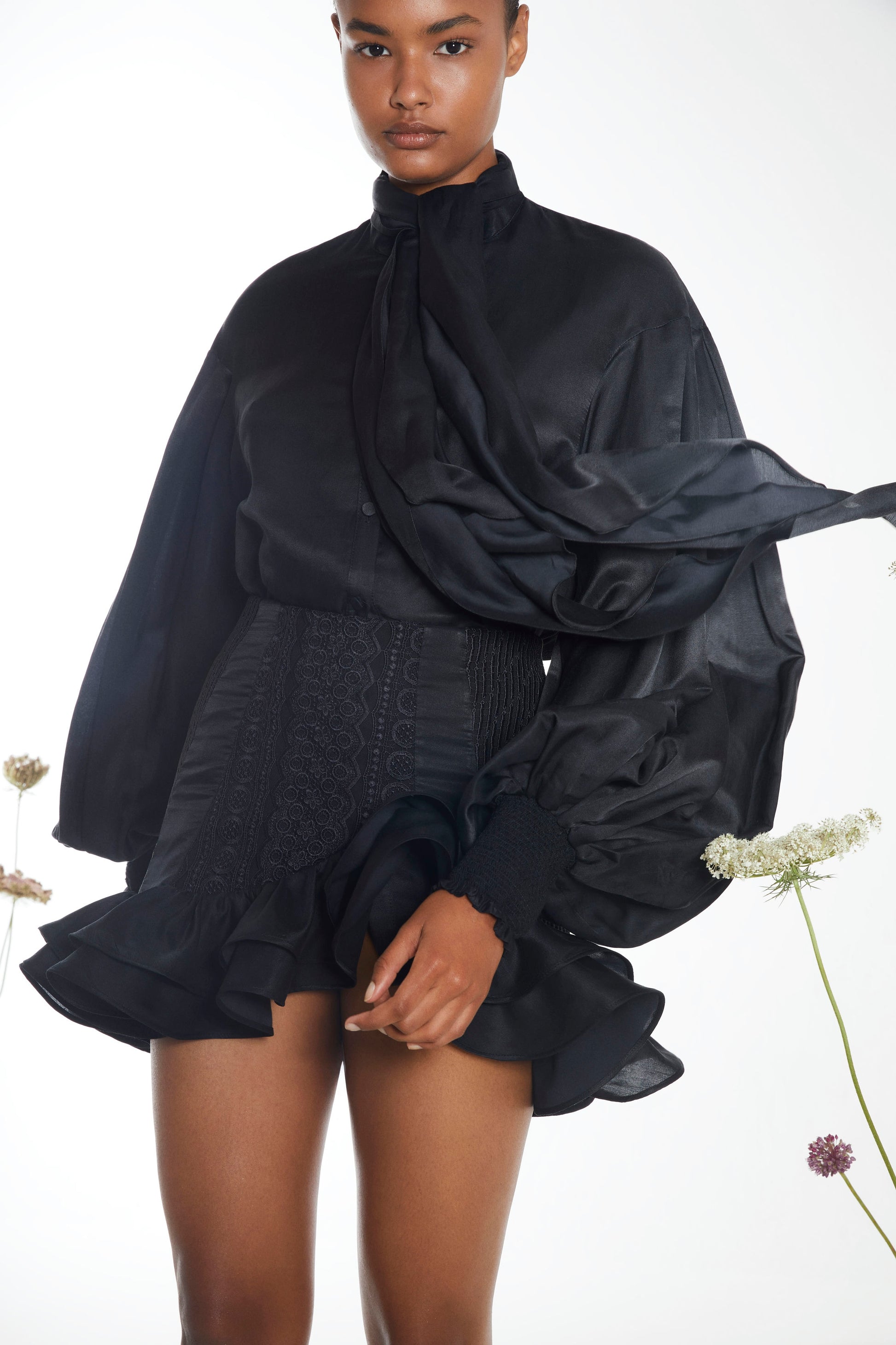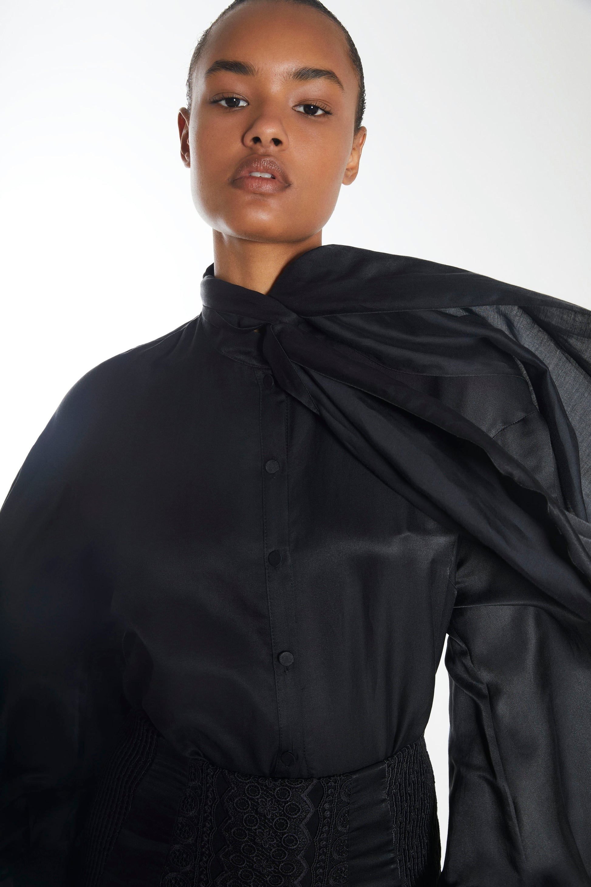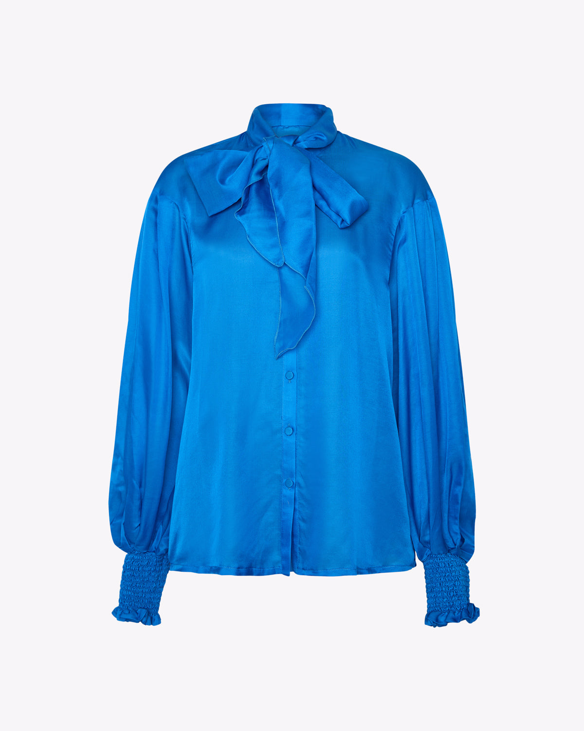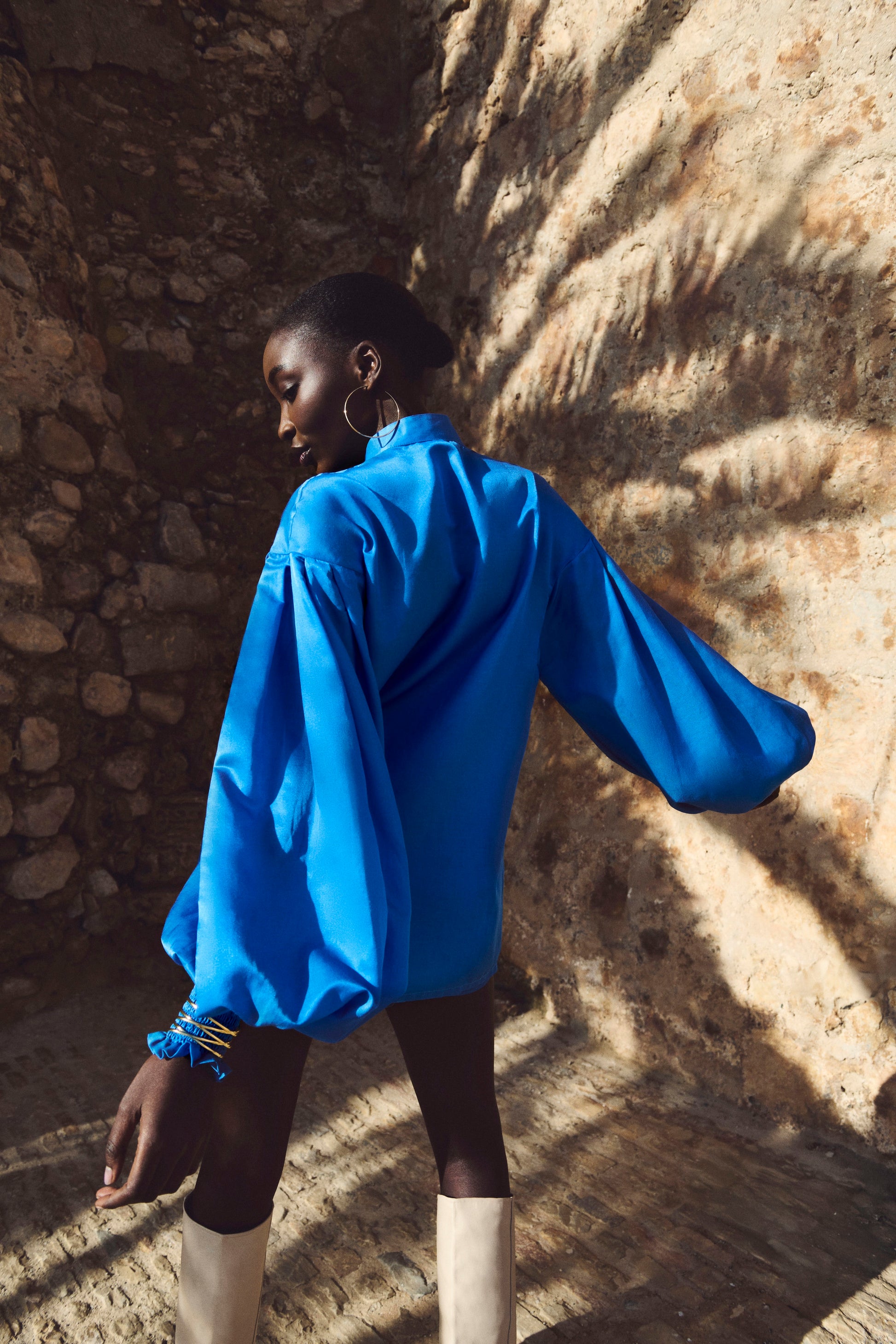 Sumérgete en el lujo y la sofisticación con nuestra camisa BOMMIE. Confeccionada en mezcla de seda y algodón y acabados artesanales, esta pieza es una declaración de elegancia y estilo atemporal. Sus líneas favorecedoras, femenina lazada al cuello y mangas XL hacen de esta una pieza imprescindible que eleva tus looks para cualquier ocasión.