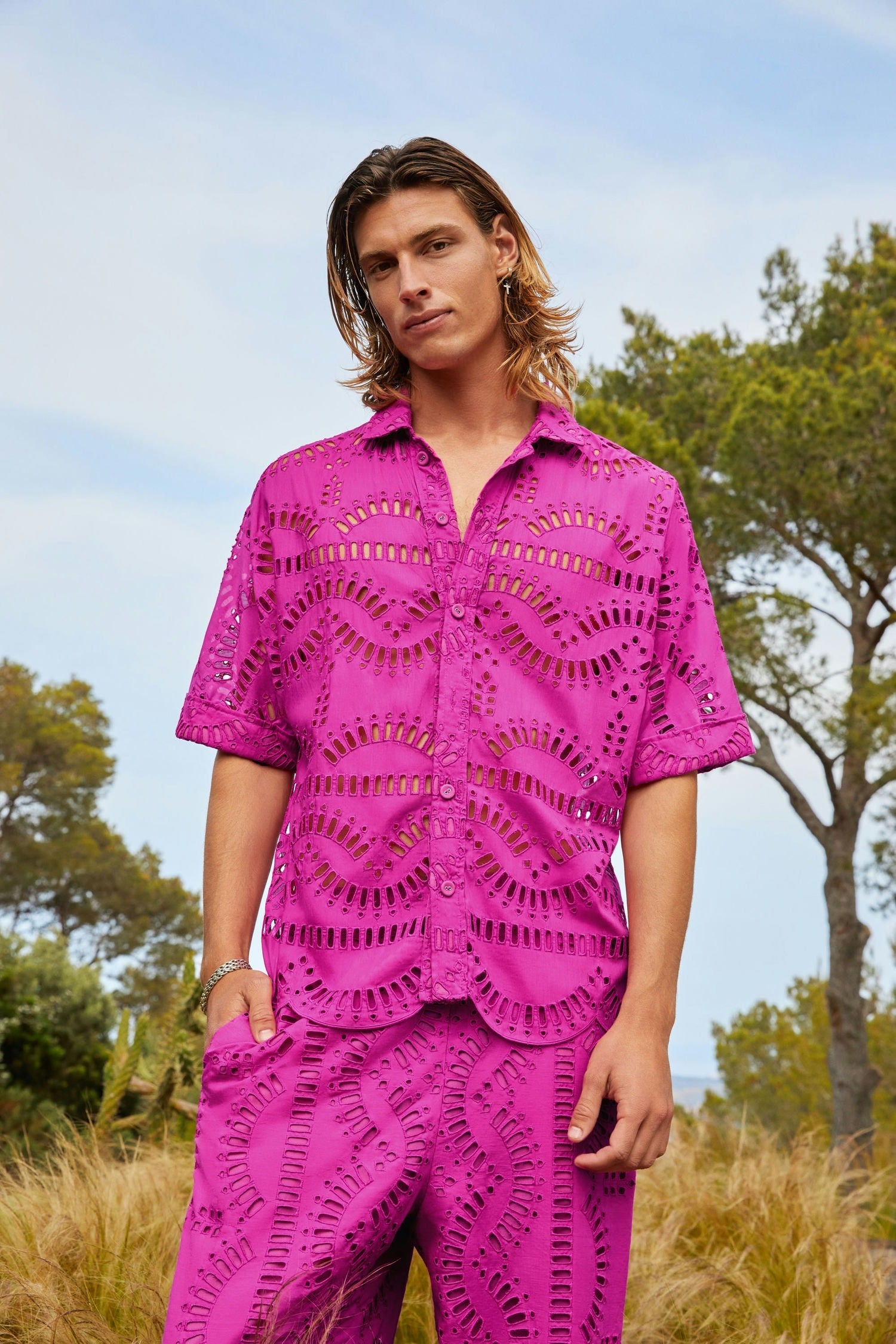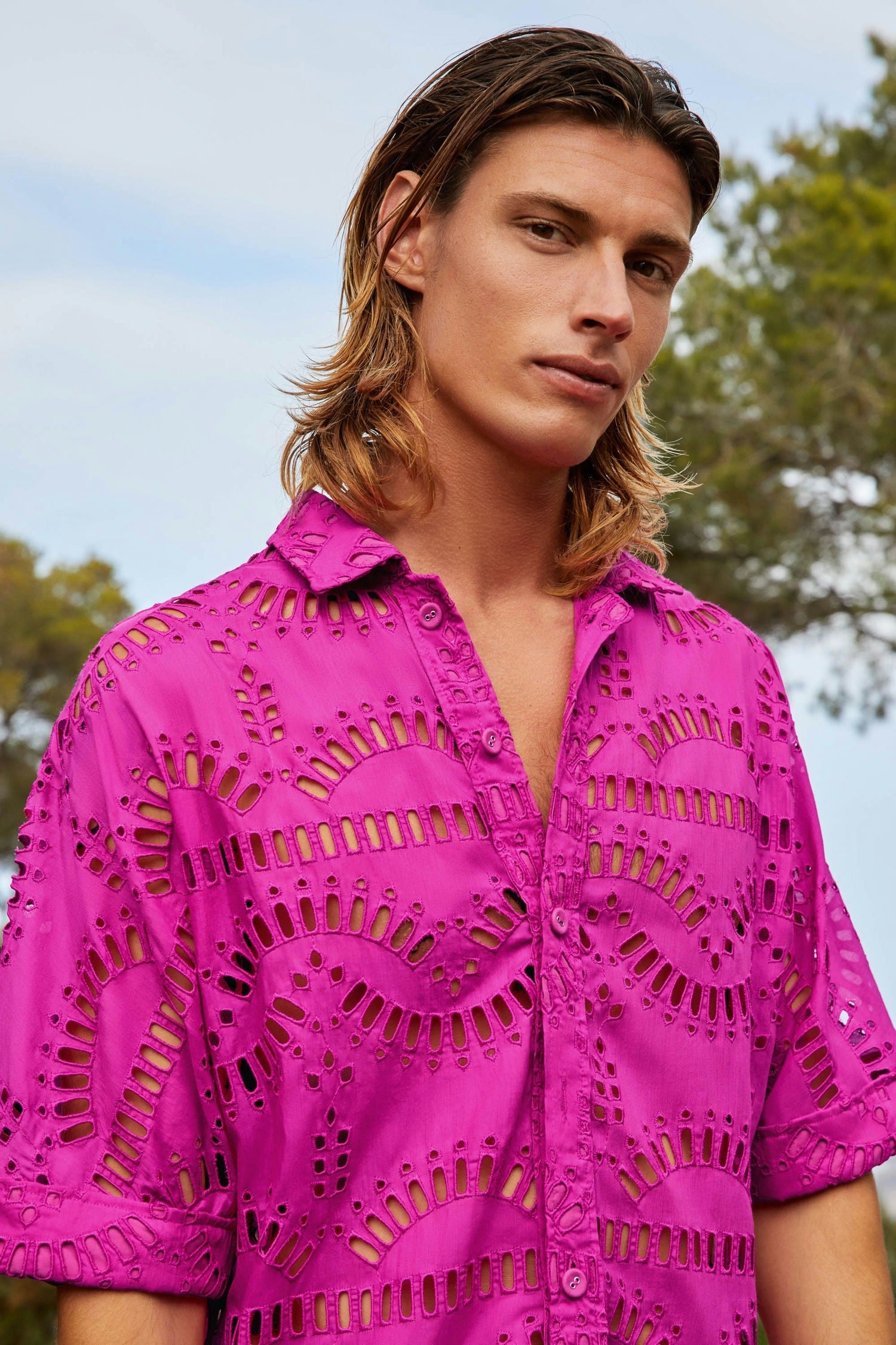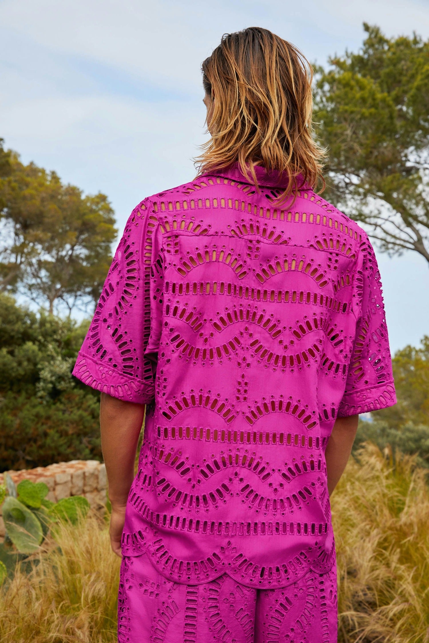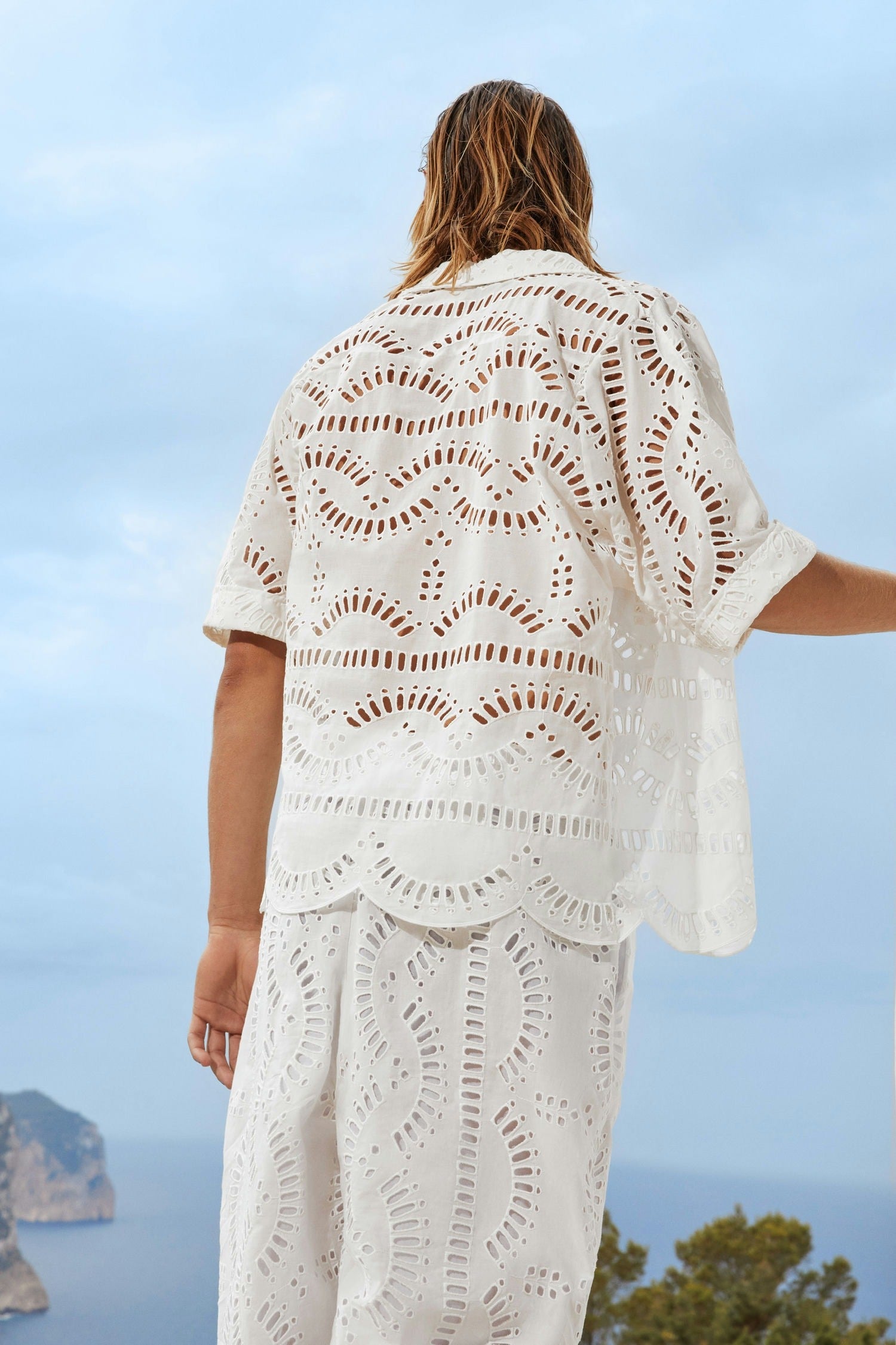 Nuestra camisa Isma se convierte en un clásico de temporada estival gracias a su andrógina silueta y comodidad. Las mangas xl y los acabados en 'scallops' de la parte inferior complementan las líneas rectas de su cuello camisero. La delicadeza de la textura del tejido aporta sofisticación a nuestro diseño oversize.