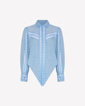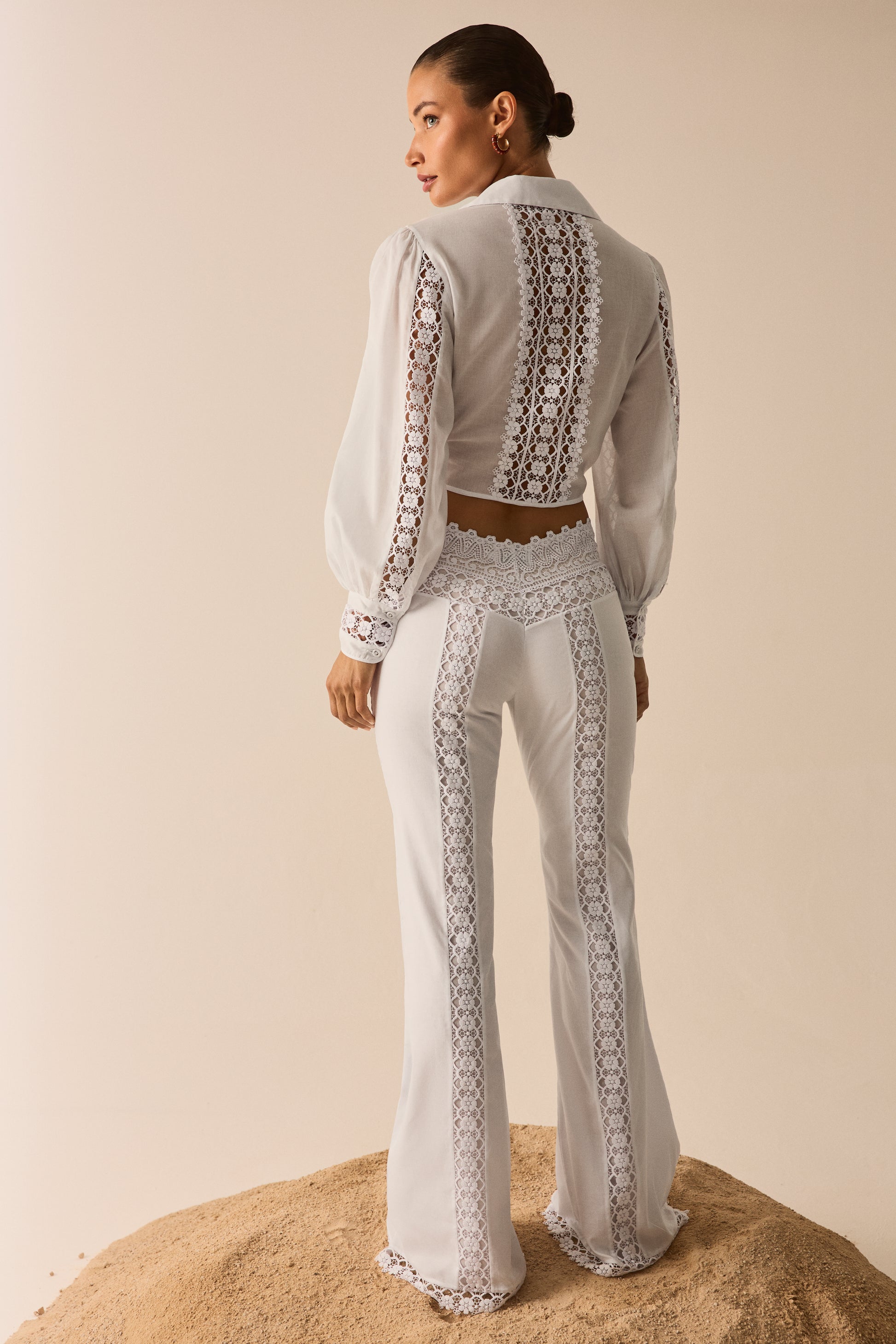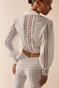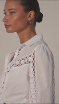 Descubre la camisa DEVI, una reinterpretación contemporánea de la clásica camisa blanca con el inconfundible sello romántico de la firma. Confeccionada en Voile de algodón y delicadas puntillas florales, esta pieza fusiona líneas estructuradas con detalles etéreos que realzan su feminidad.