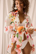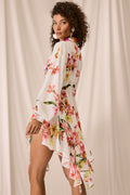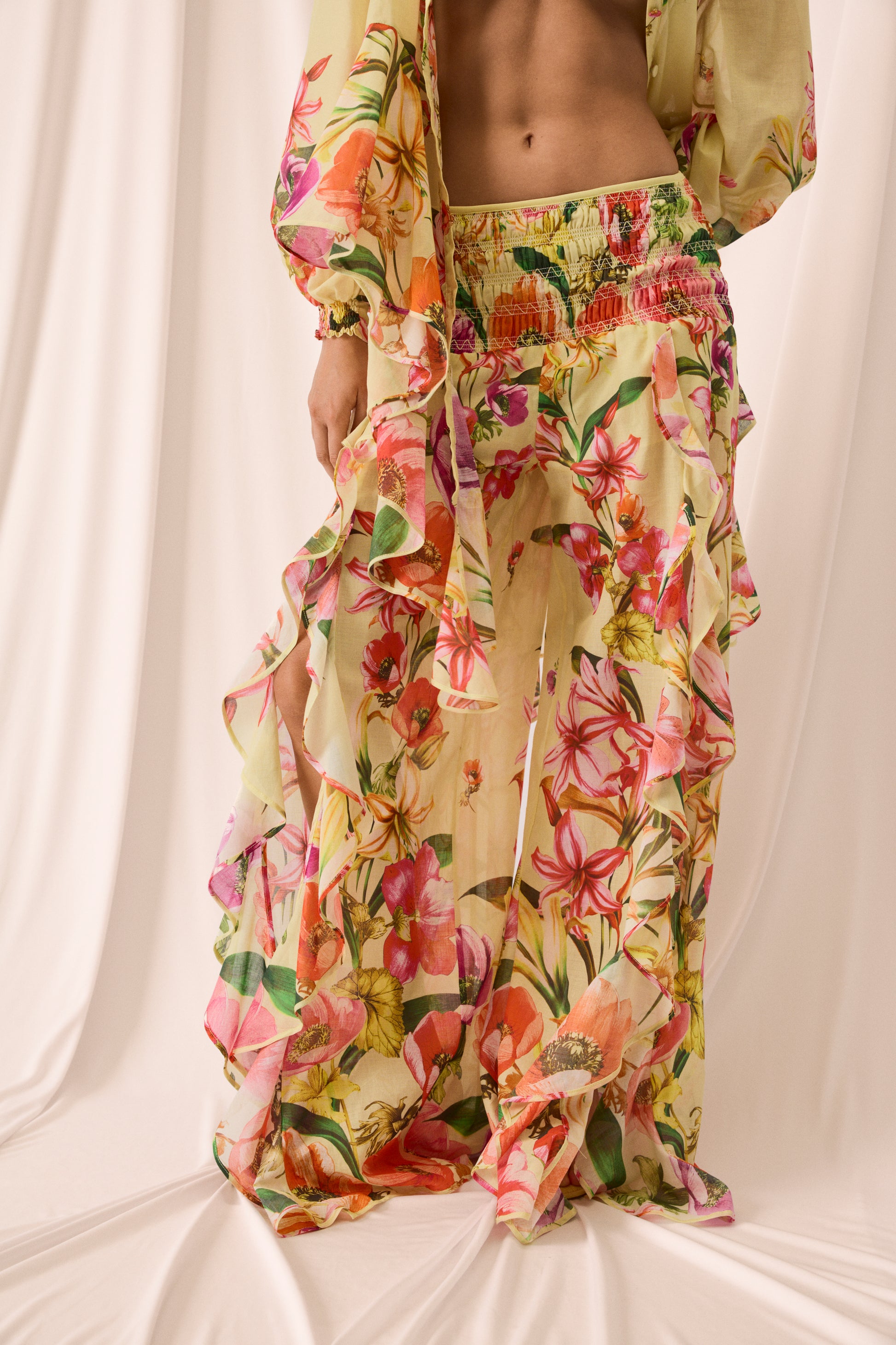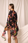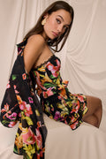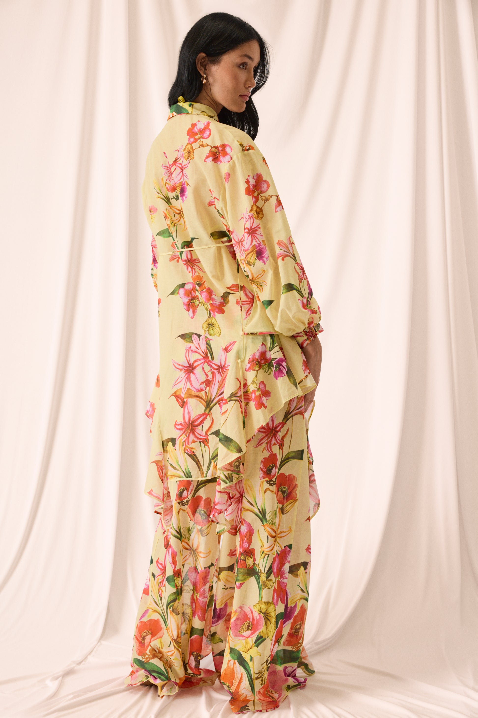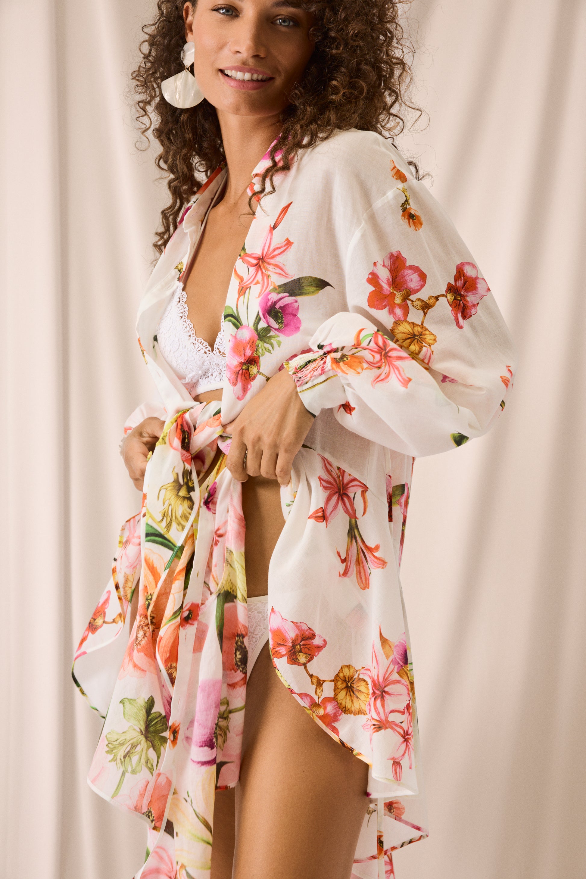 Nuestra camisa MALDI reinterpreta un clásico del armario con una silueta única y femenina. Confeccionada en algodón con un alegre estampado floral, realza la figura gracias a su volumen estructurado que parte de la cintura y se despliega en un bajo asimétrico adornado con volantes.