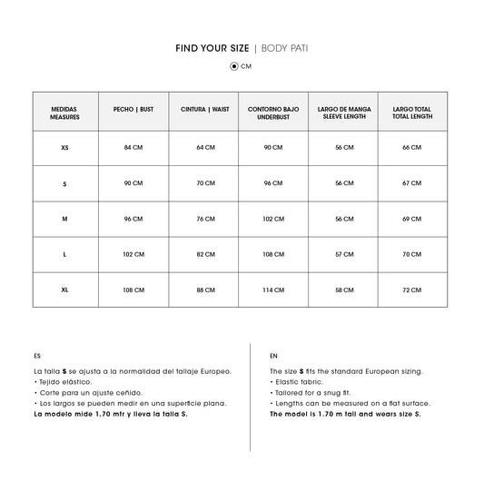 El body PATI es tu aliado perfecto para elevar tus looks y estilizar tu silueta. Su tejido de mesh con algodón se ajusta a tu figura, que se ve dibujada gracias a los cortes en espiga de sus franjas de diferentes opacidades. Su escote despejado crea una preciosa forma femenina que culmina con unas delicadas mangas ceñidas.