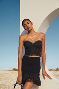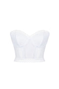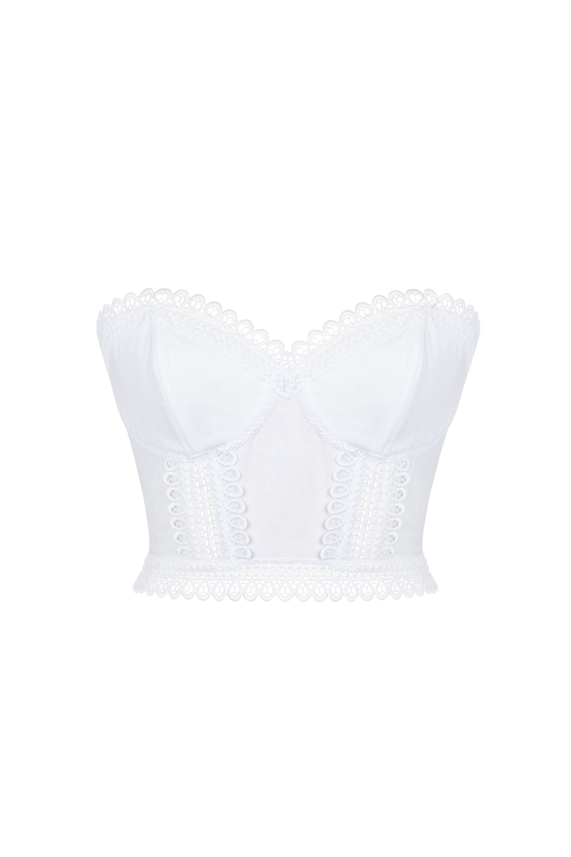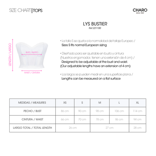 Nuestro bellísimo bustier Lys se antoja imprescindible para tus look de verano. Su favorecedor escote corazón adornado con guipures realza el pecho dibujando una silueta radiante. Su cuerpo estructurado confeccionado en Voile de algodón y guipur contornea el torso. Su espalda engomada se adapta a la perfección a tu figura consiguiendo un ajuste perfecto gracias a su cierre con cremallera lateral.
