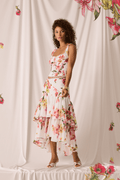 Nuestra falda GROVE es una oda a la feminidad y el movimiento. Confeccionada en algodón con un vibrante estampado floral, presenta un corte midi asimétrico que aporta dinamismo y sofisticación a cada paso.