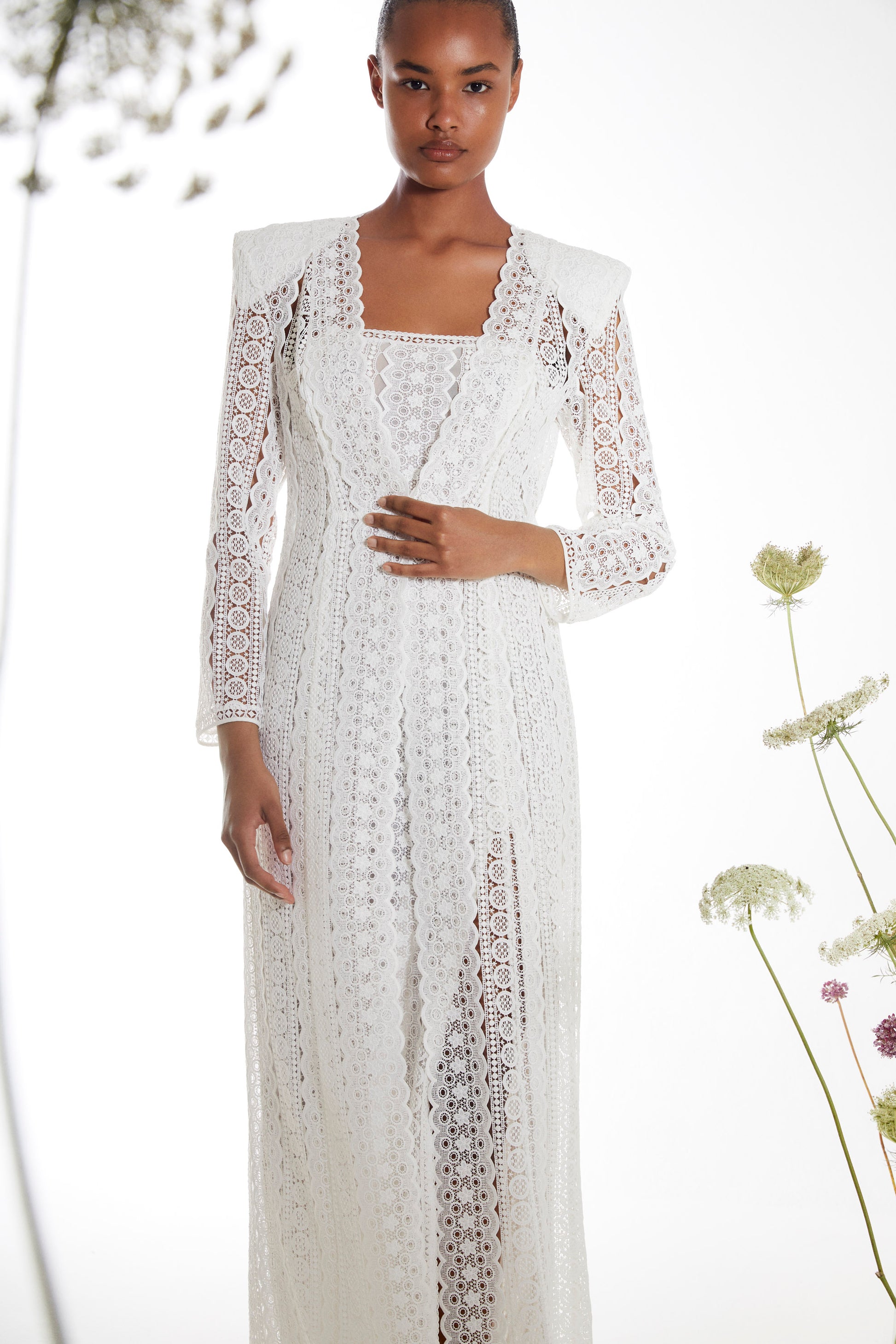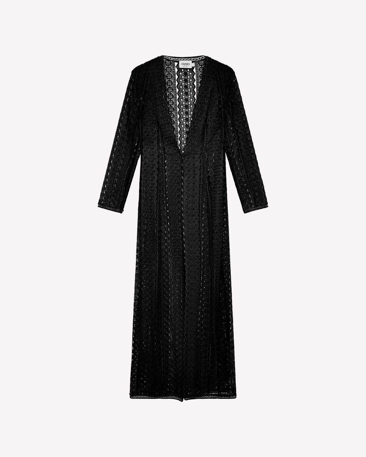 Haz una declaración de elegancia y sofisticación con nuestra impresionante chaqueta larga NILERE confeccionada en guipur. Su corte largo y fluido con hombreras ofrece un aspecto envolvente que complementa cualquier silueta, mientras que su escore en V la eleva de forma favorecedora. La versatilidad de esta pieza la convierte en la opción perfecta para una variedad de eventos, con su usabilidad de prenda exterior, vestido o caftán.