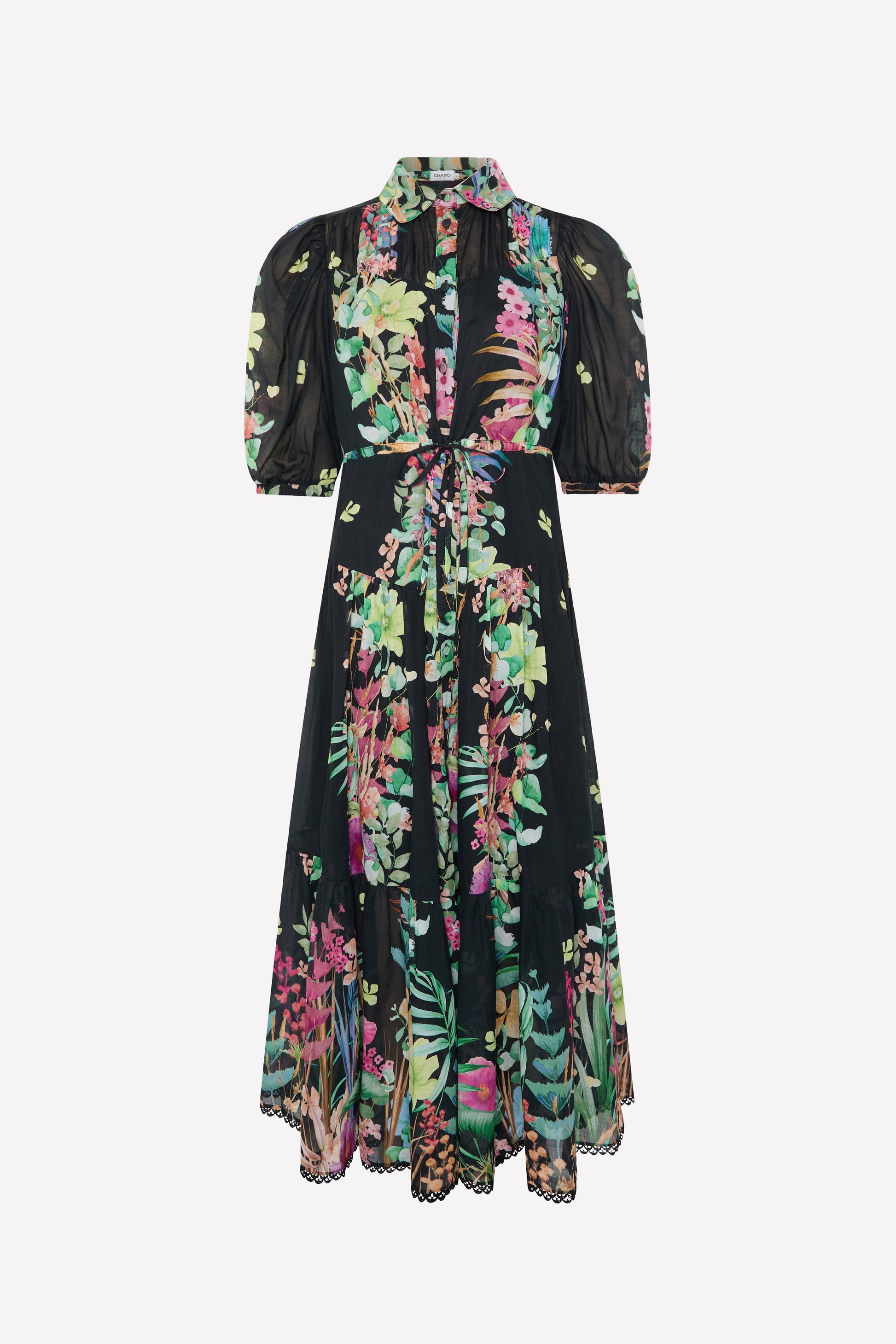Eleva tu estilo con el vestido CRISELLE, un camisero largo que reúne sofisticación y feminidad en voile de algodón estampado. El cuello camisero y la botonadura central estilizan la línea, mientras un cordón ajustable en la cinturapermite definir la figura a tu gusto. Sus mangas abullonadas con puño fruncido aportan volumen sutil y un toque romántico. La falda amplia cae con ligereza y se remata en puntilla bordada para un guiño artesanal. Versátil y elegante: llévalo abotonado, semiabierto o sobre tu beachwear para un look estival elevado.
