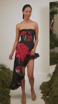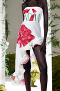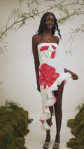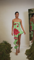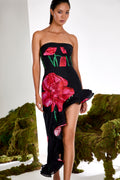 La joya de la temporada es nuestro vestido ESME, que te acompañará en tus veladas más inolvidables. Elaborado en voile de algodón con nuestro maxi print floral en acuarela, es una pieza altamente femenina que captará todas las miradas. Su escote con copas fruncidas continua a una falda asimétrica acabada en esculturales volantes.