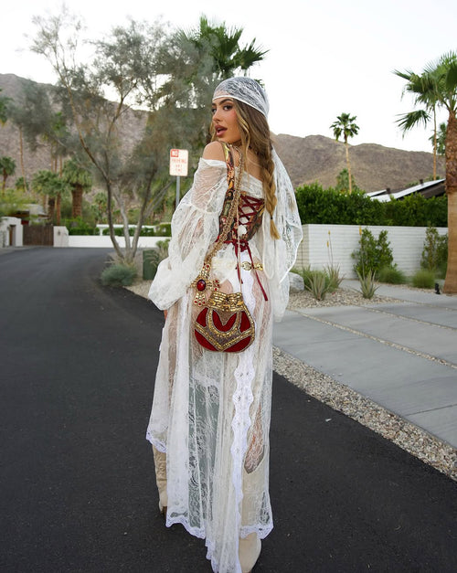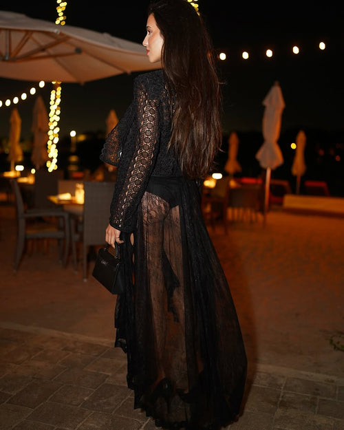 Nuestra falda MERENNE es el epítome de la feminidad gracias a su precioso tejido de delicada blonda. Su elegante semitransparencia y abertura en un lado adorna tus piernas y se conceptualiza en el grácil movimiento de la falda al caminar.