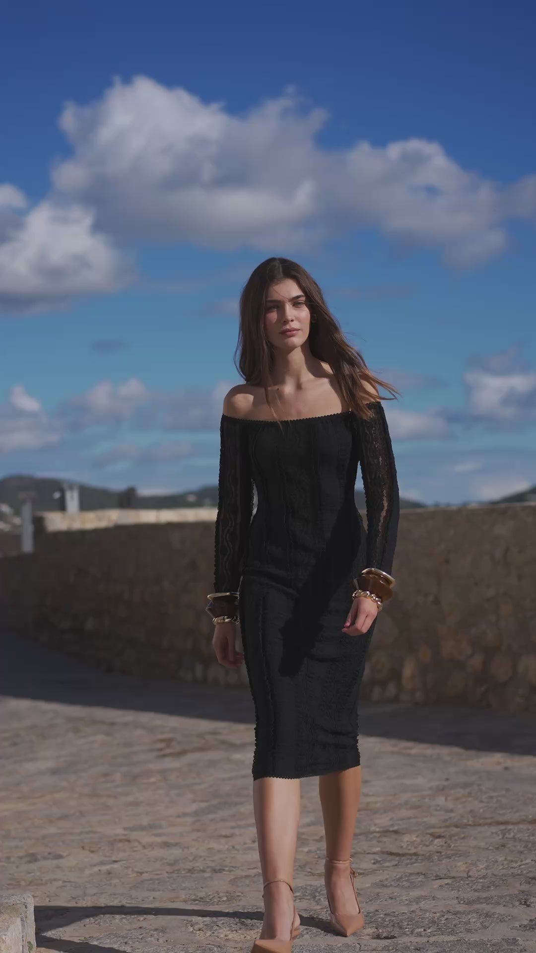 El vestido midi MISTY es una pieza favorecedora y deslumbrante, ideal para tus eventos más especiales. Su escote bardot deja al descubierto tus hombros y da comienzo a unas bonitas mangas ceñidas. El resto de su cuerpo, fabricado en mesh con algodón, estiliza tu figura.