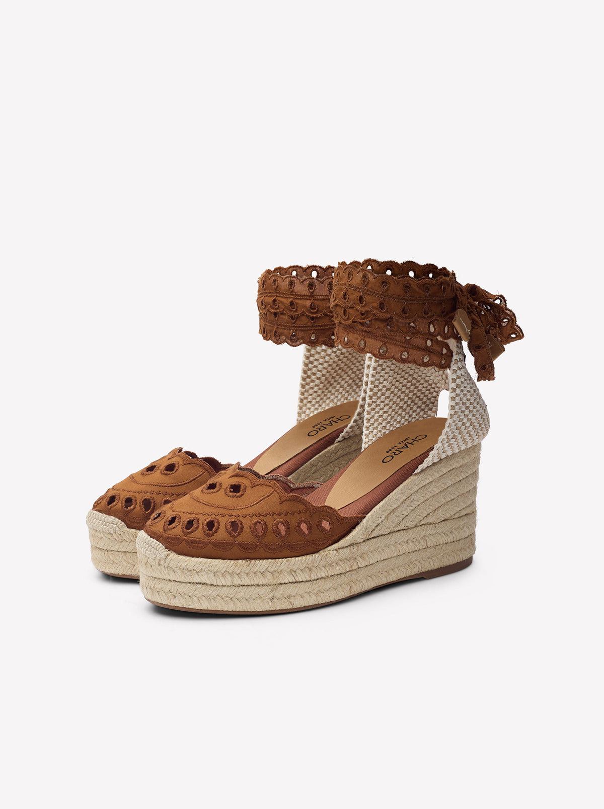 Presenta una cuña de yute de 8 cm con doble plataforma. Su diseño envuelve el pie con suavidad, ofreciendo estabilidad y confort sin renunciar a la elegancia.