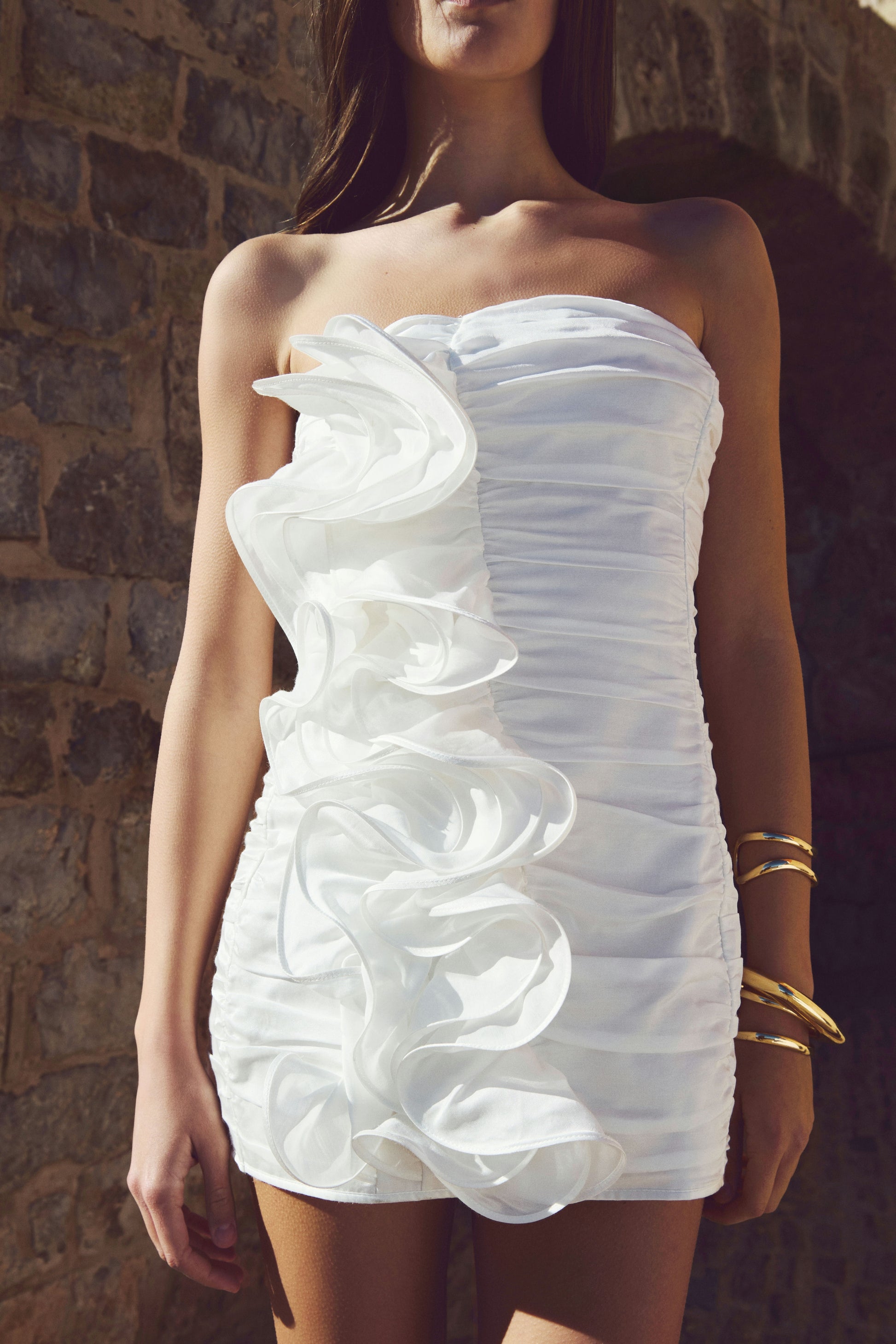 ORBET es el mini vestido ‘it’ de la temporada. Realizado en lujosa mezcla de seda con algodón, su escote palabra de honor y paneles fruncidos dibujan y realzan tu silueta. Siéntete guapa para tus eventos más especiales gracias a sus escultóricos volantes que aportan un extra de sofisticación.