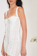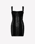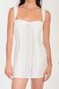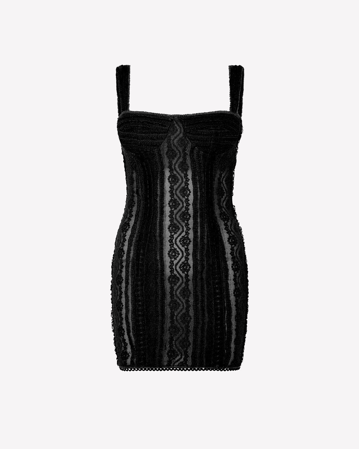 El mini vestido SELENE, en tejido de mesh con algodón, es el epítome de la belleza estival. Su delicado escote corazón y tirantes anchos crean unos hombros delicados y su cuerpo ajustado realza tu figura femenina. Su estructura con copas otorga forma al precioso juego de transparencias que crea su entramado.