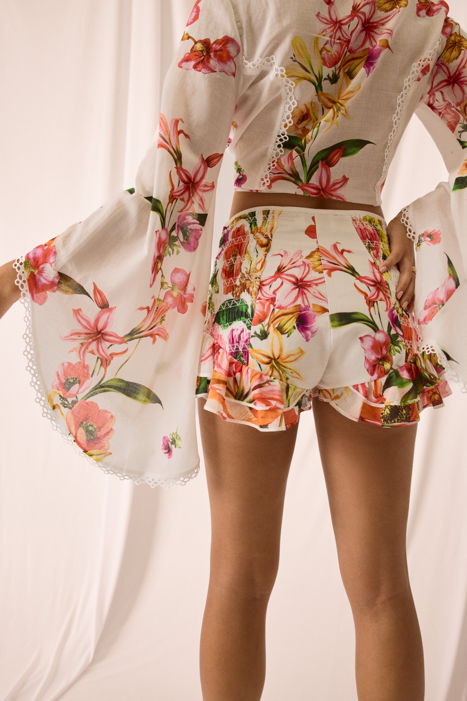 Nuestro short culotte MANGO es una pieza distinta, atrevida y femenina. Confeccionado en algodón floral, combina una silueta ceñida con delicados volantes en el bajo, logrando ese equilibrio perfecto entre lo romántico y lo audaz. Ideal para destacar en tus looks estivales.