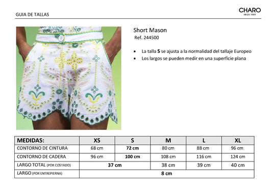 Los shorts Mason aúnan delicadeza con comodidad gracias a sus suaves líneas y acabados festoneados. La pieza, elaborada en lino bordado y emplazado, eleva cualquier look.