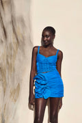 Nuestra mini falda GIAN combina la suavidad y el lujo de la seda con un diseño moderno y favorecedor que resalta tu feminidad con un toque de glamour. Elaborada en mezcla de algodón con seda, se encuentra fruncida en su totalidad y presenta un escultórico volante fijo que añade textura y dimensión. Su corte realza tus piernas y crea un ajuste perfecto para adaptarse a tu figura.