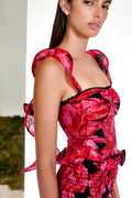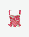 Añade el bustier estampado DESSINE, en voile de algodón y con escote corazón a tu colección y transforma cualquier look en el culmen elegancia. Siéntete radiante gracias a sus copas fruncidas y acabados en sinuosos volantes tanto en tirantes como finales de la pieza. El bustier luce nuestro exclusivo estampado estival en acuarela.