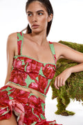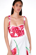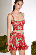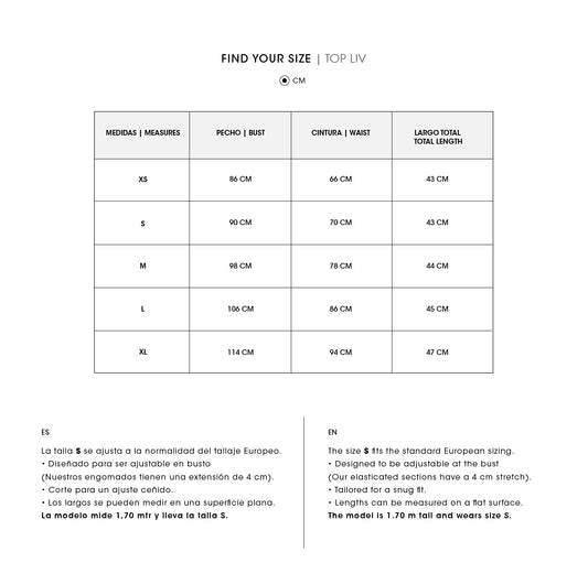 El top LIV, confeccionado en voile de algodón estampado, añade un toque romántico gracias a su escote corazón y resalta el busto de manera favorecedora. Sus tirantes anchos proporcionan un ajuste delicado y cómodo que se enriquece con su textura bordada 3D. La pieza luce nuestro exclusivo estampado estival en acuarela.