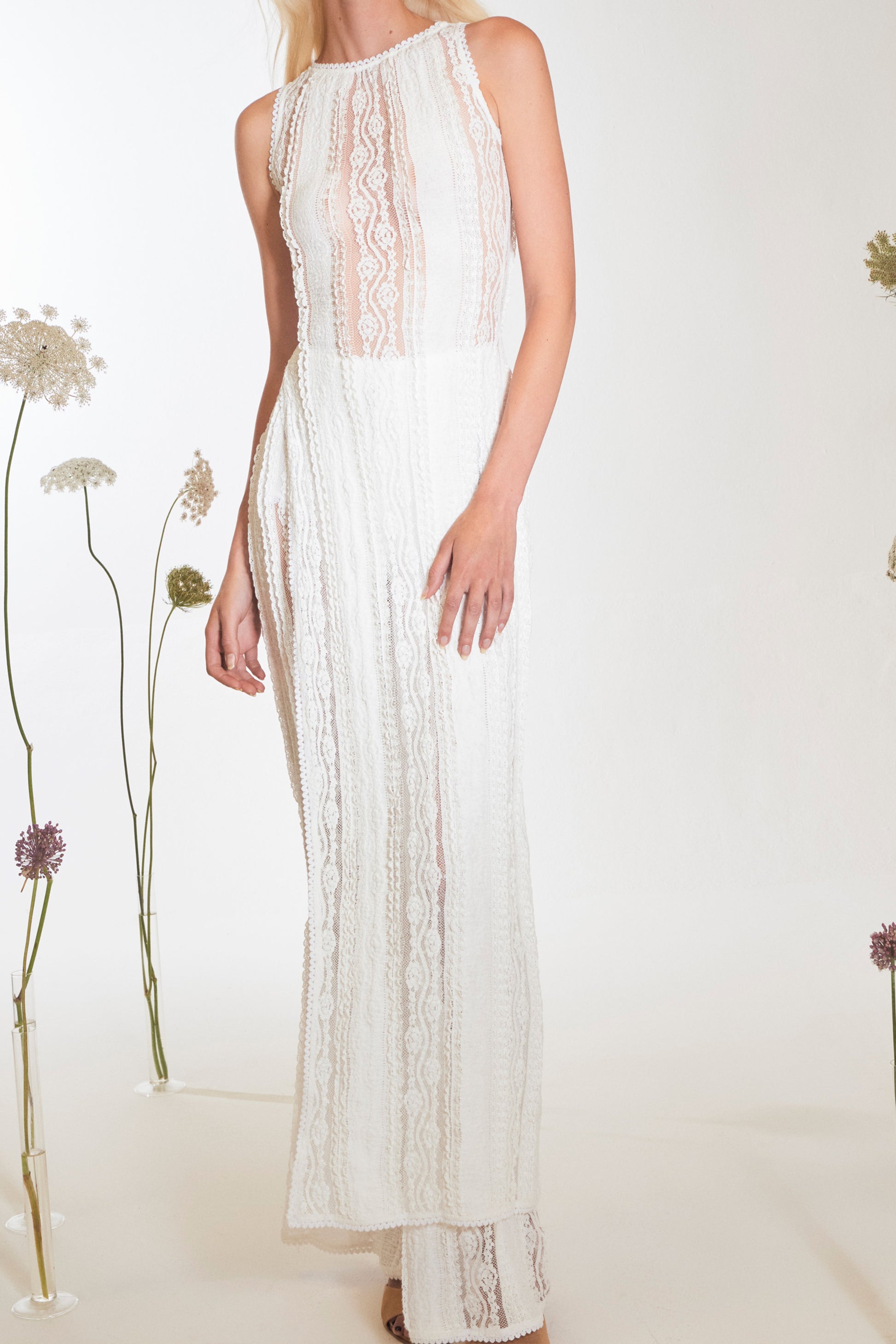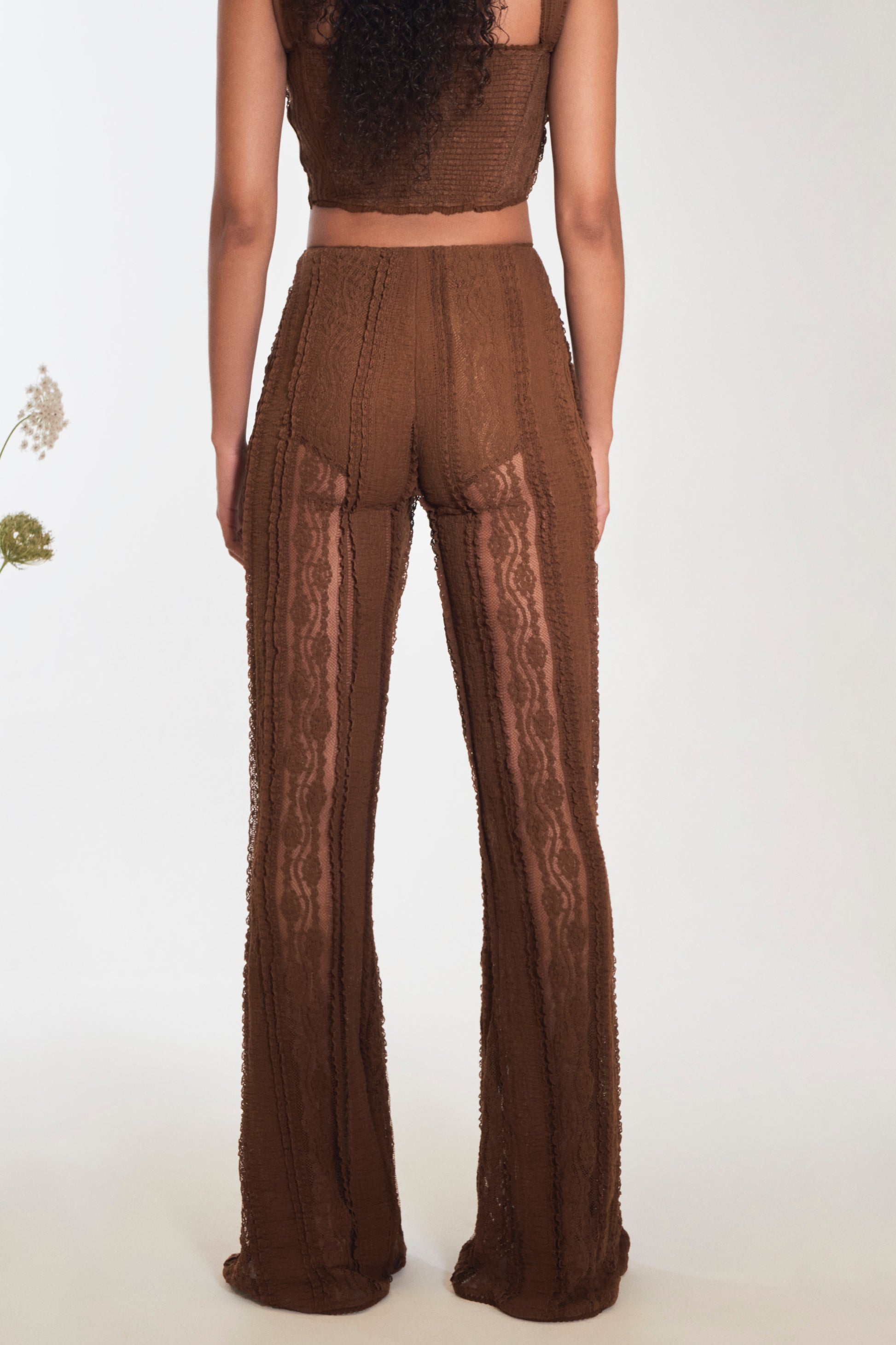 Camina radiante allá donde vayas con nuestros pantalones EANA confeccionados en mesh con algodón. Sus ricas texturas y elegantes patrones verticales adornan tus piernas mientras crean un juego de opacidades que añaden dimensión a esta favorecedora creación.