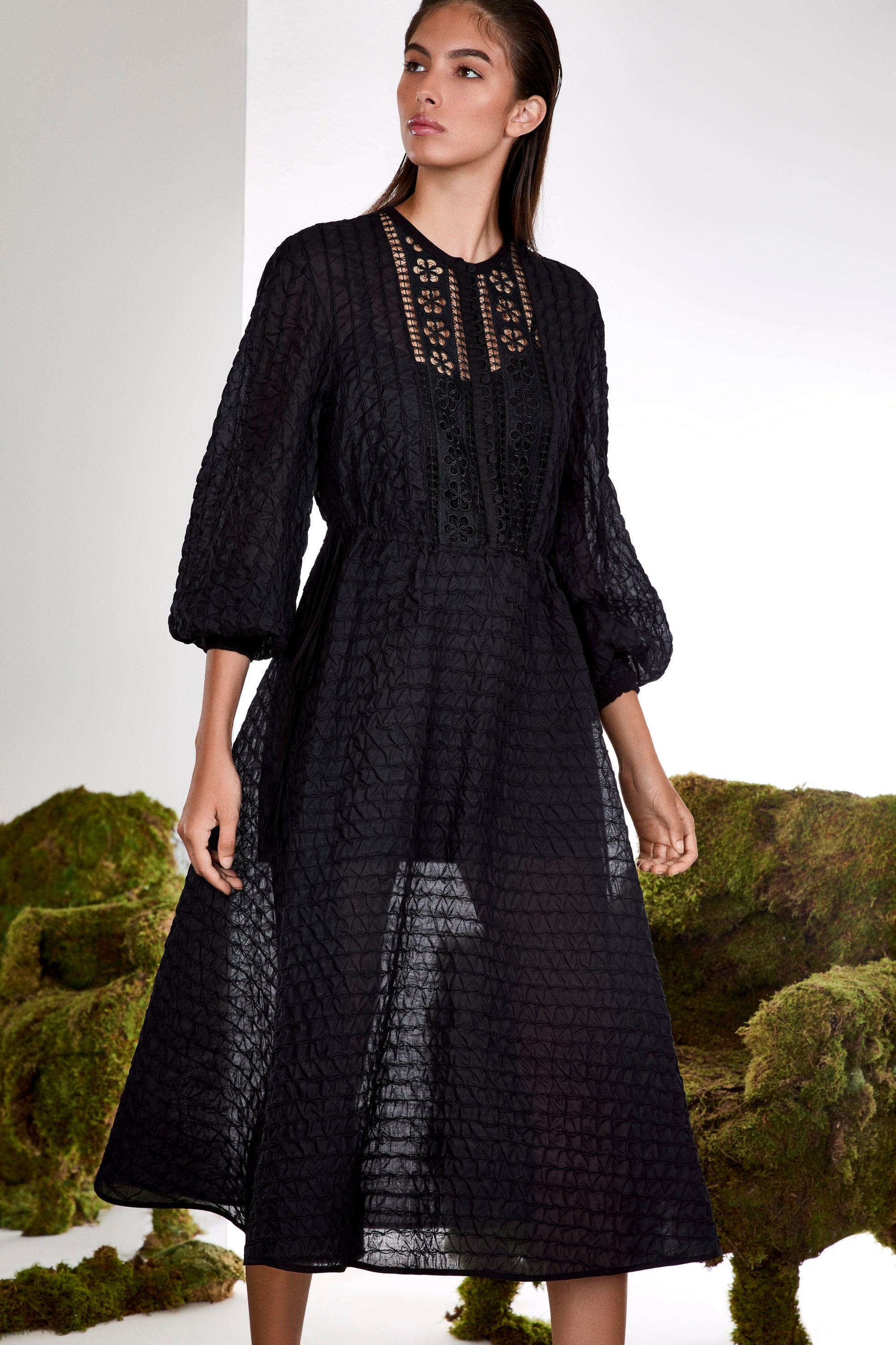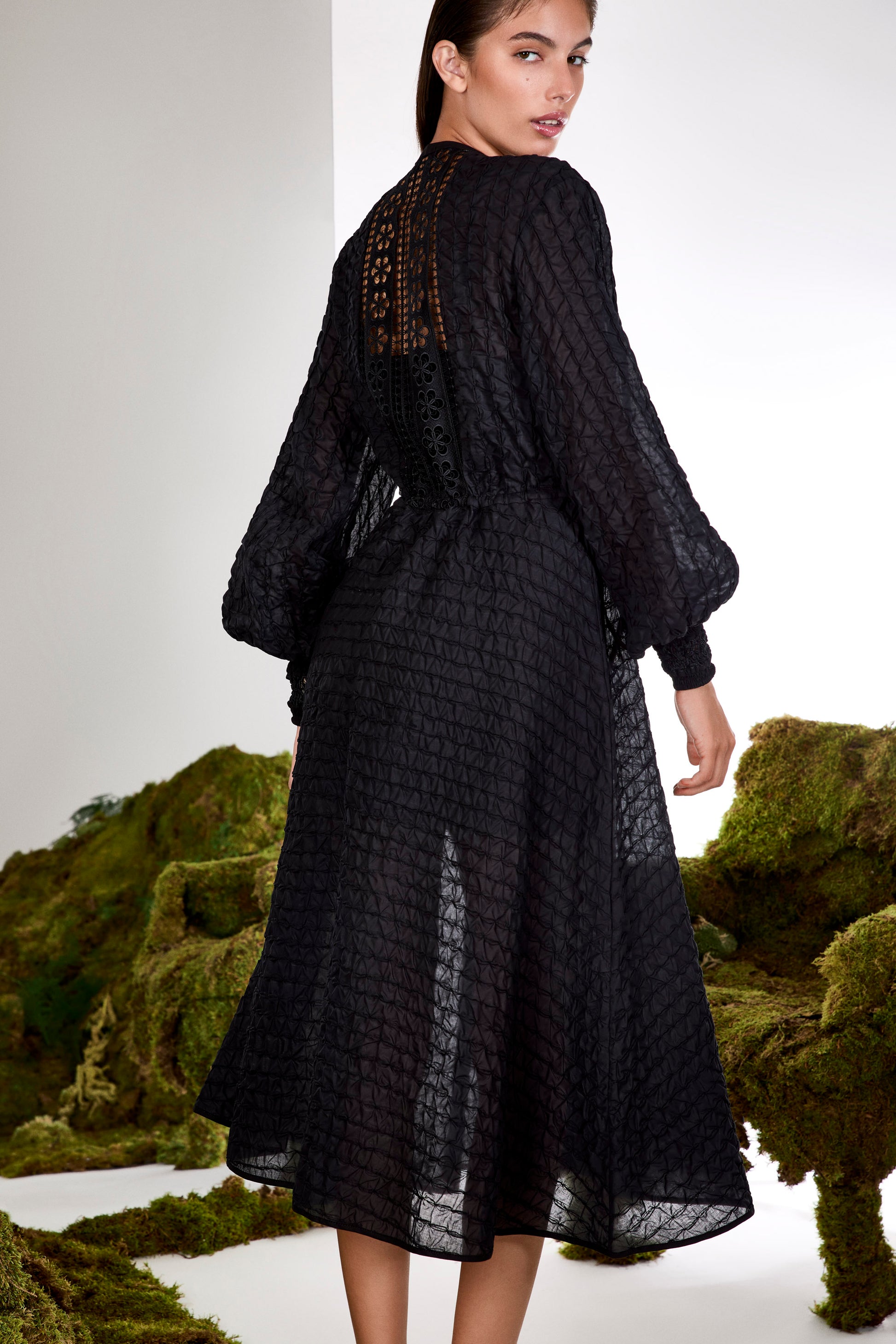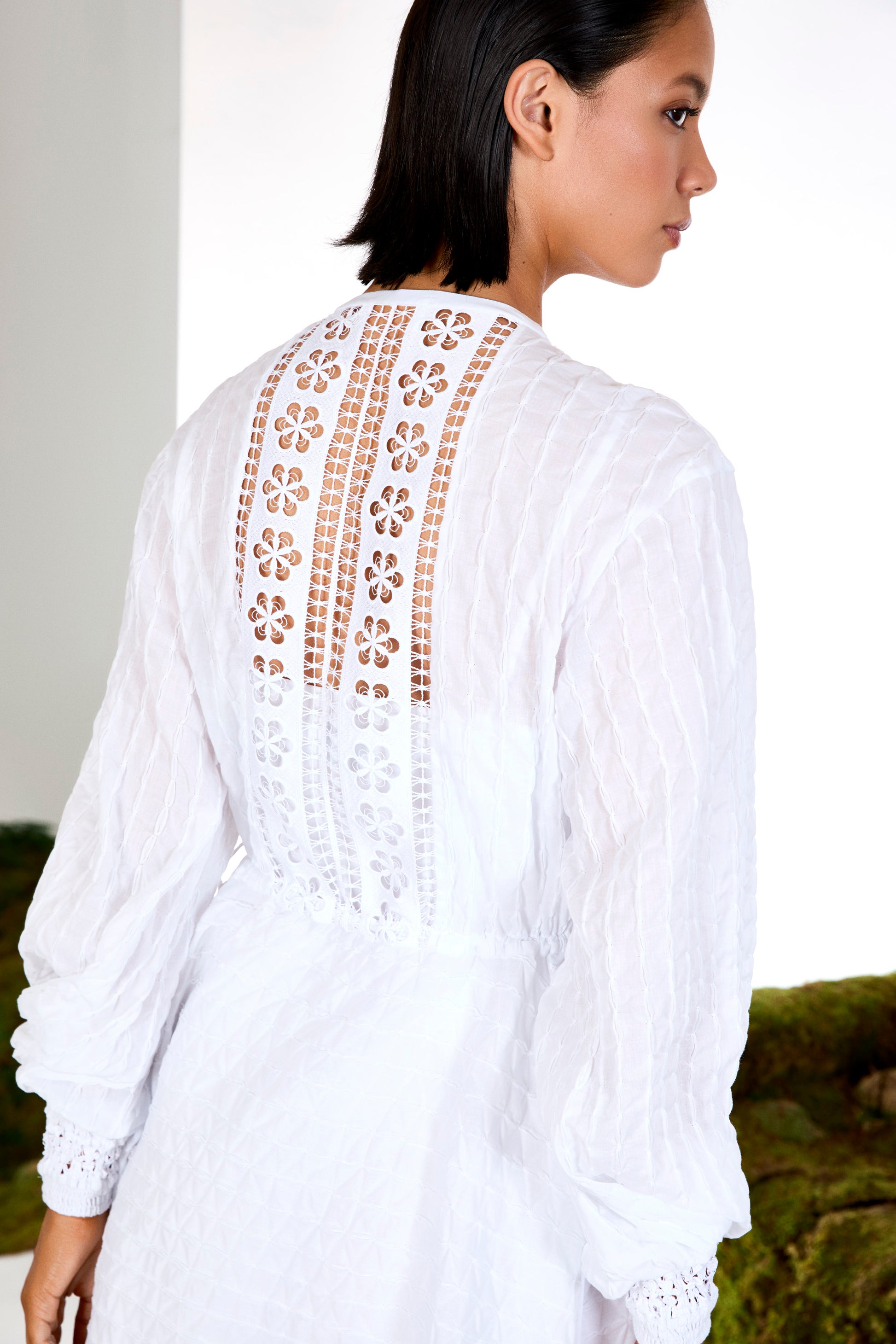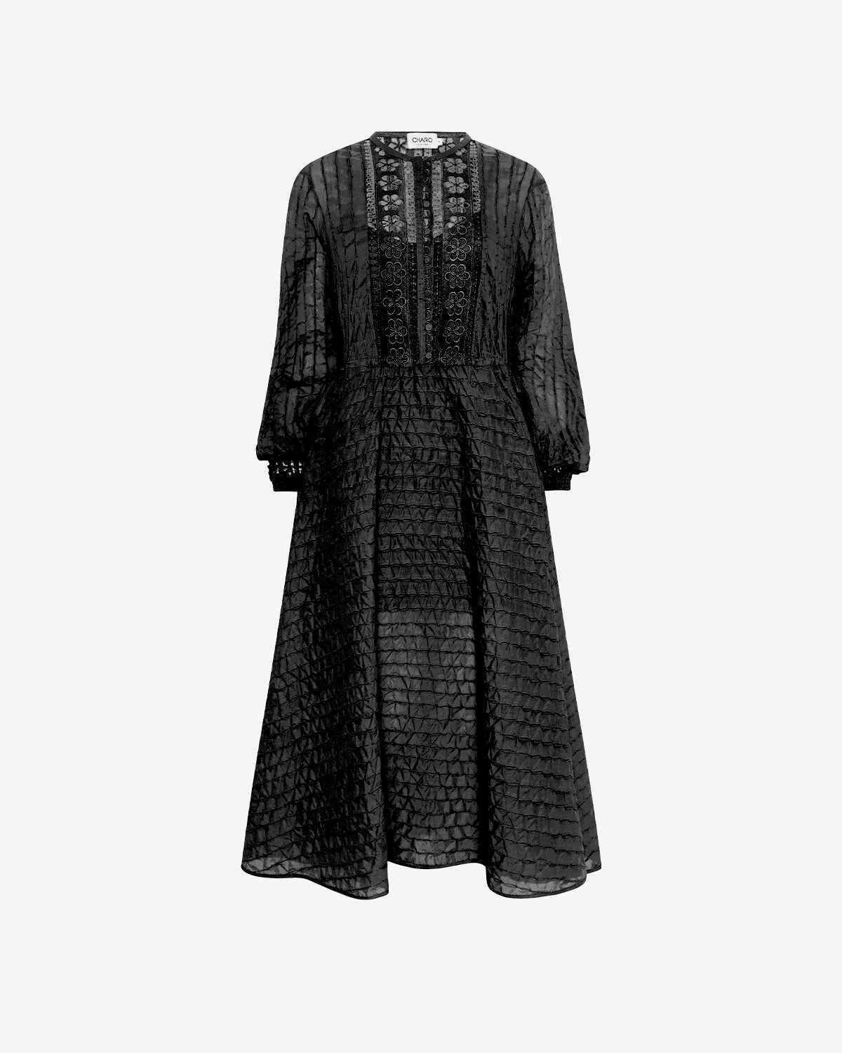 The ELESA long dress will be the star of your most important events. Its cotton voile is embroidered with 3D technique that, together with its central guipures, elevates the piece thanks to its sculptural silhouettes. It comes with a separate undergarment for you to feel more comfortable.