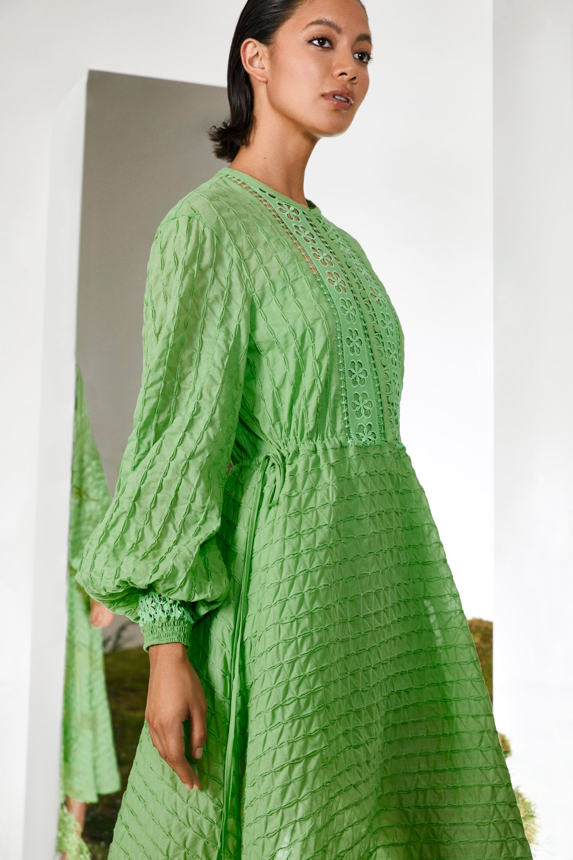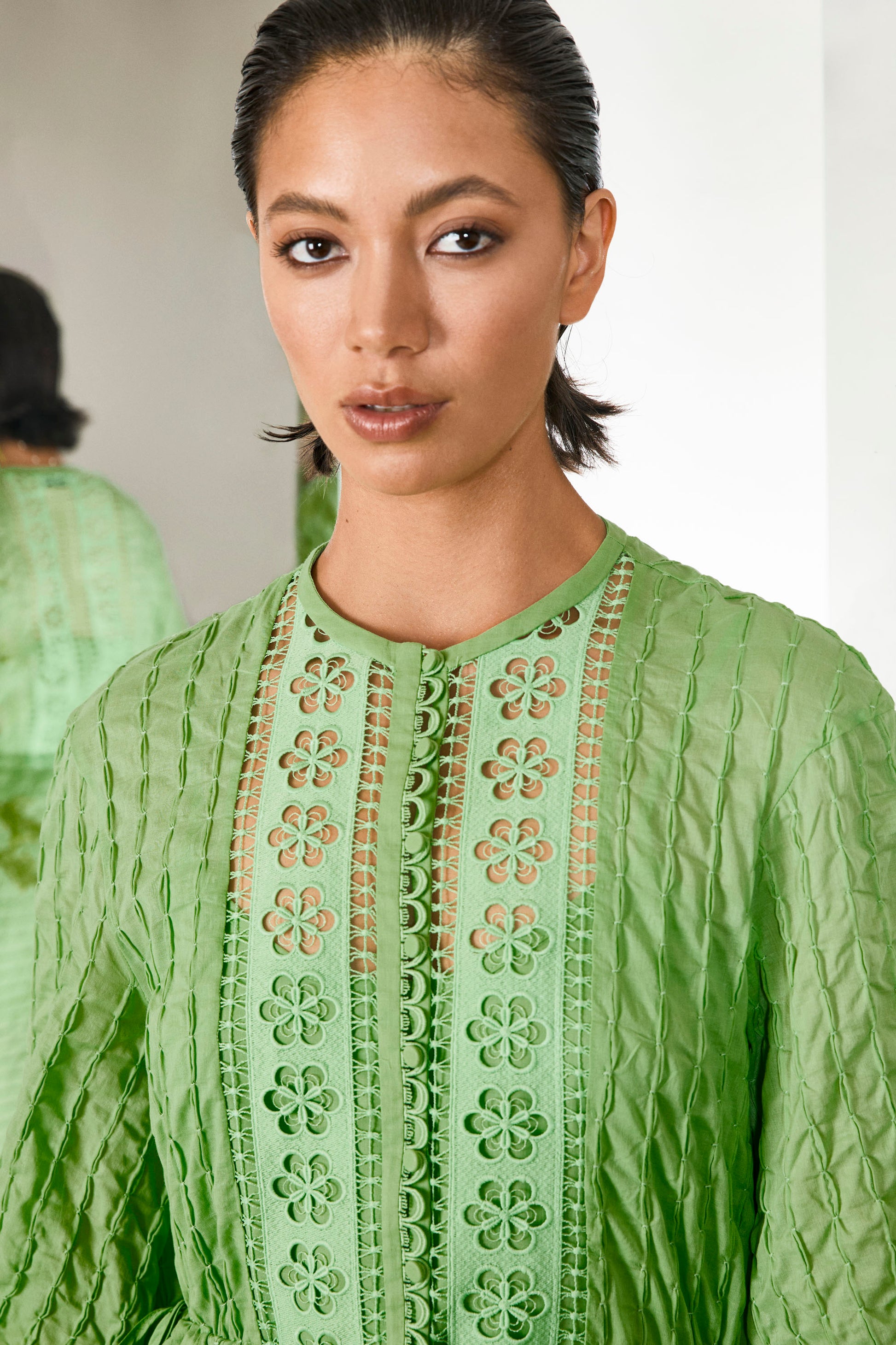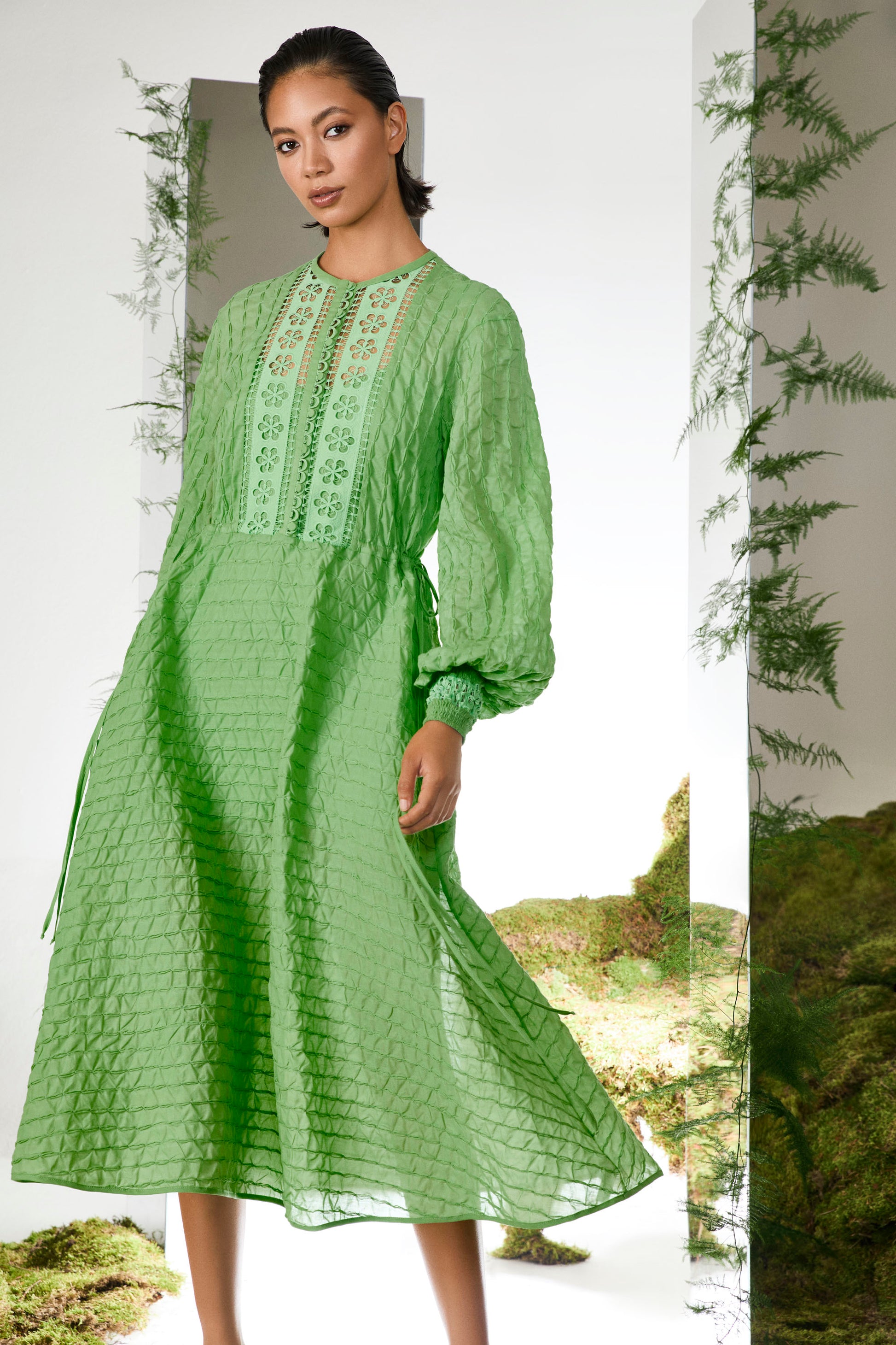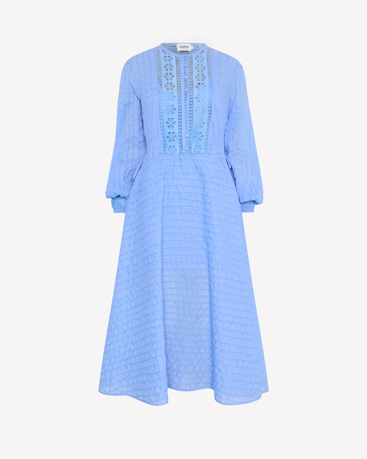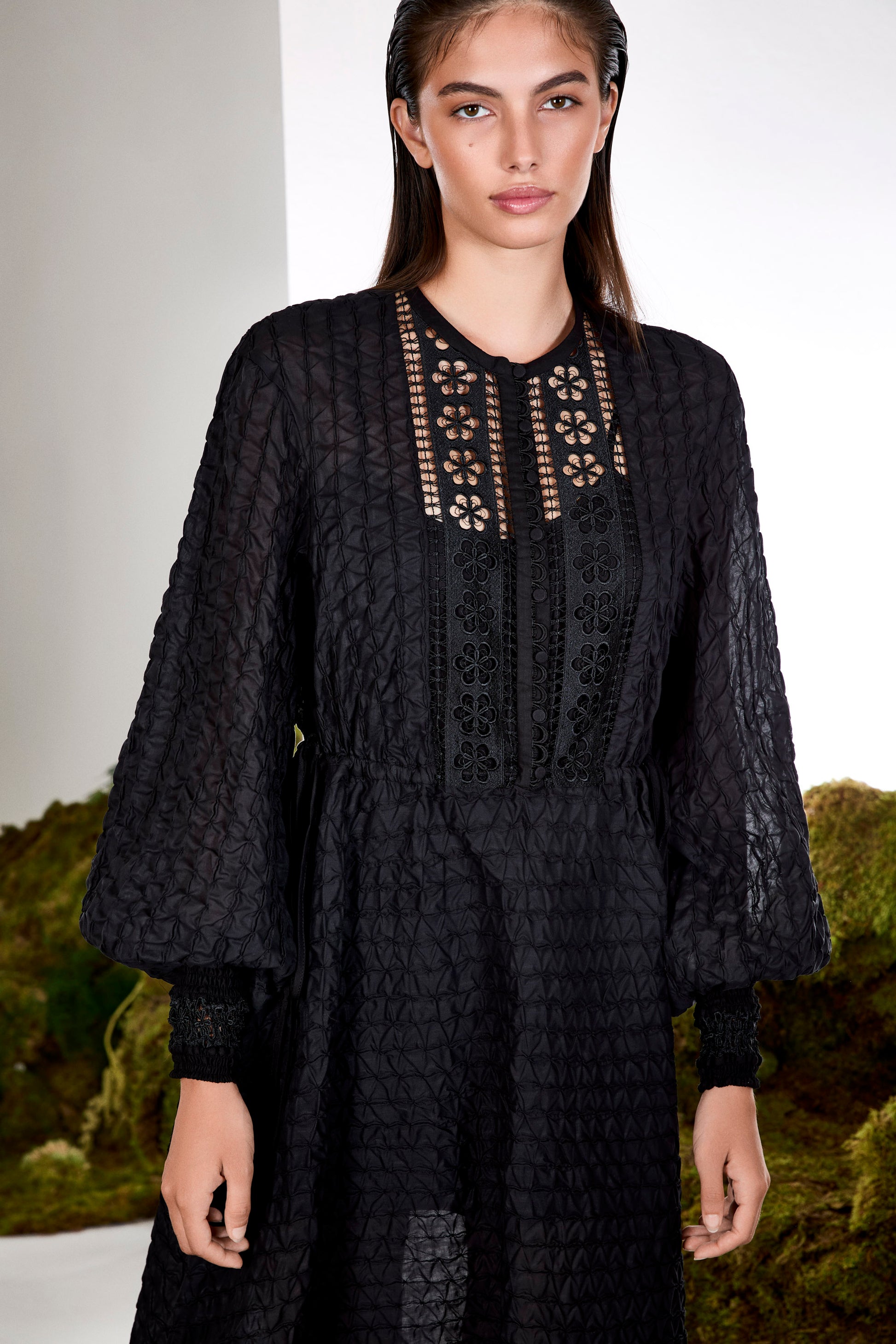 The ELESA long dress will be the star of your most important events. Its cotton voile is embroidered with 3D technique that, together with its central guipures, elevates the piece thanks to its sculptural silhouettes. It comes with a separate undergarment for you to feel more comfortable.