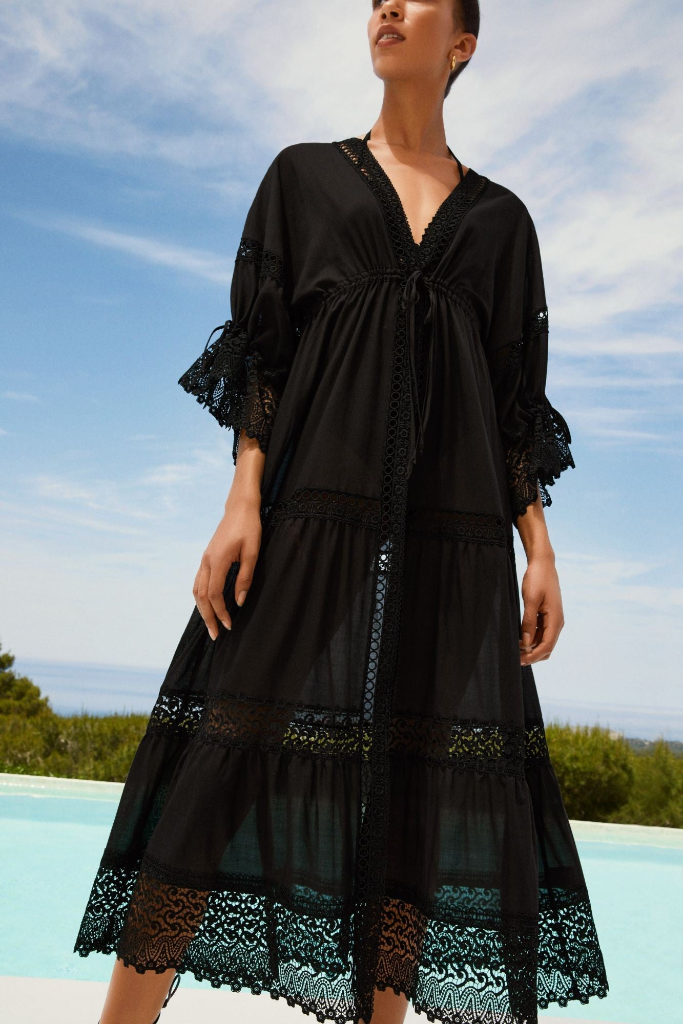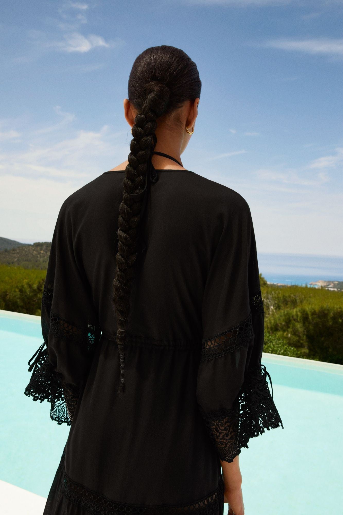Nuestro caftán largo Claire es una pieza veraniega de ensueño que elevará todos tus looks en traje de baño. La riqueza de los guipures geométricos que adornan el caftán hacen de nuestro Claire una pieza única que querrás repetir durante todo el verano. Combínalo con unos vaqueros y uno de nuestros crop tops para un look casual "de calle".